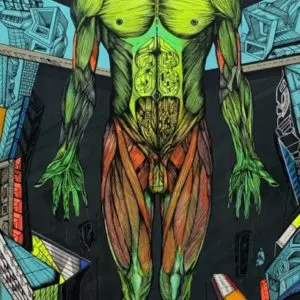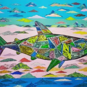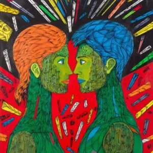 GAVRILOVIĆ’s visual style employs elements of comic book art, stained glass complexity, and saturated primary colors that showcase his finely tuned drawing skills. One is never done observing a work by Gavrilović. The sheer detail of his work is borne of multiple sketches first in his artist’s journal which is then carefully recast to larger surfaces. The startling results depict friction of the coexistence of the natural world and the fabricated ones—both beautiful and reverent.