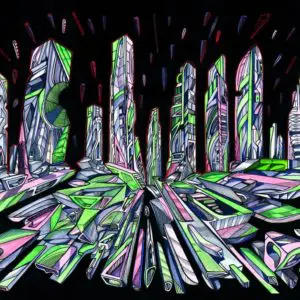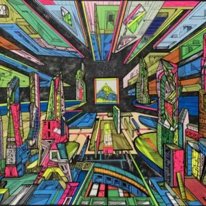 AFTER THE RAIN marks MARKO GAVRILOVIĆ’s second time exhibiting at MASH Gallery. His first appearance was via LUMEN, the August 2019 group exhibition, which highlighted the use of light and color in both 2D and 3D works of art. For his post-pandemic return to downtown Los Angeles, GAVRILOVIC stuns with paintings integrating intricate geometric detail, vividly intense color, and Escher-reminiscent perspectives drawing the viewer into Inception-like worlds that seem to expand and contract on the canvas, like a Hitchcockian lens trick.