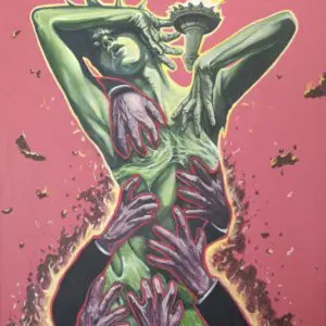 Showcased artists include vivid abstractionist Moises Ortiz, whose arresting works evince an energetic use of color and composition; Terri Lloyd, whose faceless figures grace the stark suburban pastel backgrounds of her childhood; abstract photographer of ordinary household items, Laura Hull; urban street artist and portraitist, Jacob Root; modern-day Lichenstein descendant, Dan Litzinger, whose pop-comic style mixes mid-century aesthetics with current pop culture imagery; the minimalist installation art of Alex Chiu among many others.