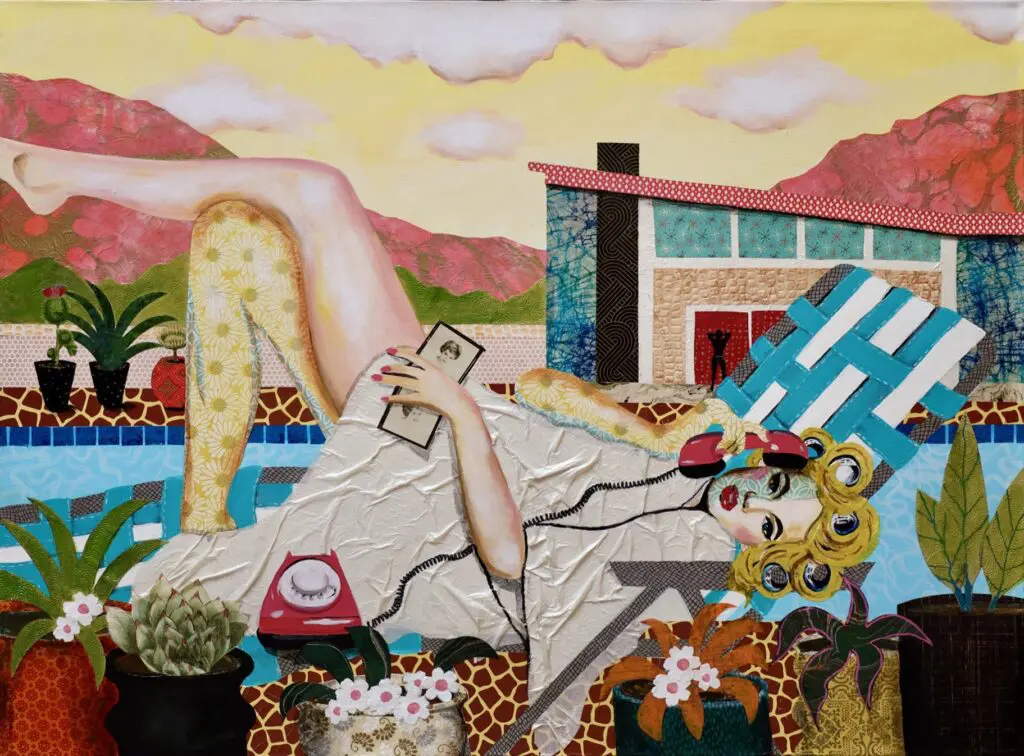 PALM SPRINGS IS ALWAYS A GOOD IDEA by Cabell Molina mixed media on canvas 36″ X 48″