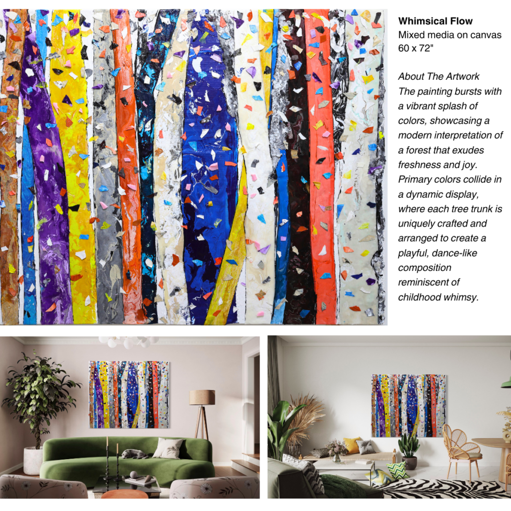 Step into Grove of Enchantment exhibition that mirrors the shifting emotions of the forest through the psychology of color in art. Haleh Mashian’s innovative collection, on display at Mash Gallery, a Los Angeles contemporary art haven in West Hollywood, harmonizes with the dynamic rhythms of nature, each piece infused with bold layers of primary and neutral colors in art, pigment, and richly textured materials.