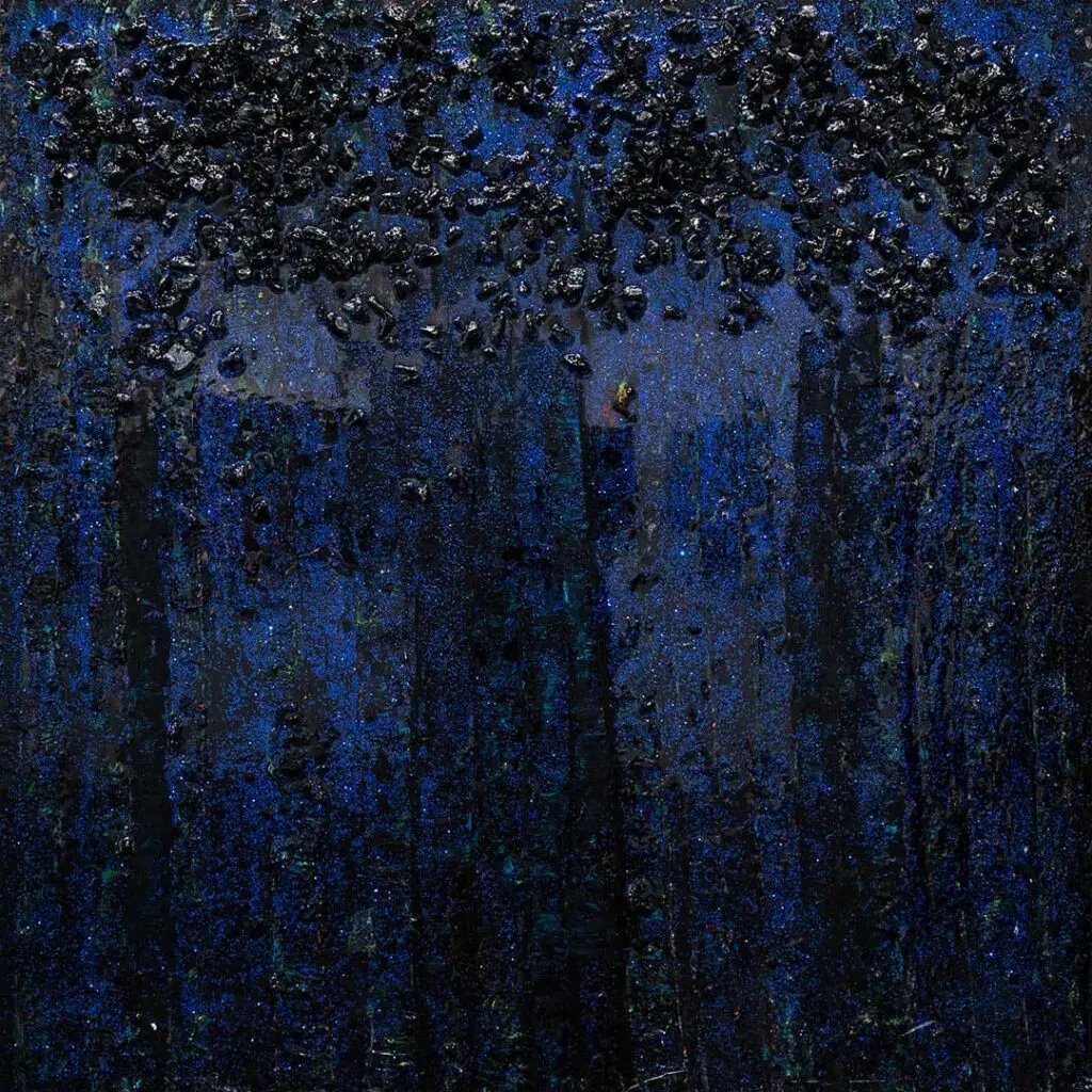 Dark tones of blue create a moody, immersive atmosphere, evoking a sense of depth and intrigue. When a sudden burst of lighter color is introduced, it disrupts the shadowy palette, pulling the viewer’s gaze to the point of contrast.
