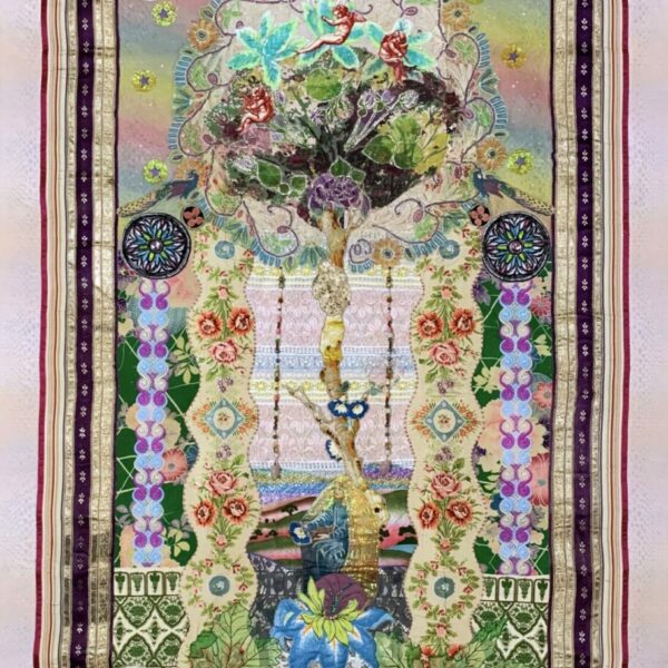 In her Fabric collage tapestries, Amy portrays the surreal reality and overwhelming power of the connection of human beings and nature through the lens of an ancient metaphysicians The AKACHIC RECORD, where the totality of everything that ever was, is , and will be. The timelessness of her pieces is a window to a nostalgic sense of the past where presence and future resides simultaneously and where love resides.