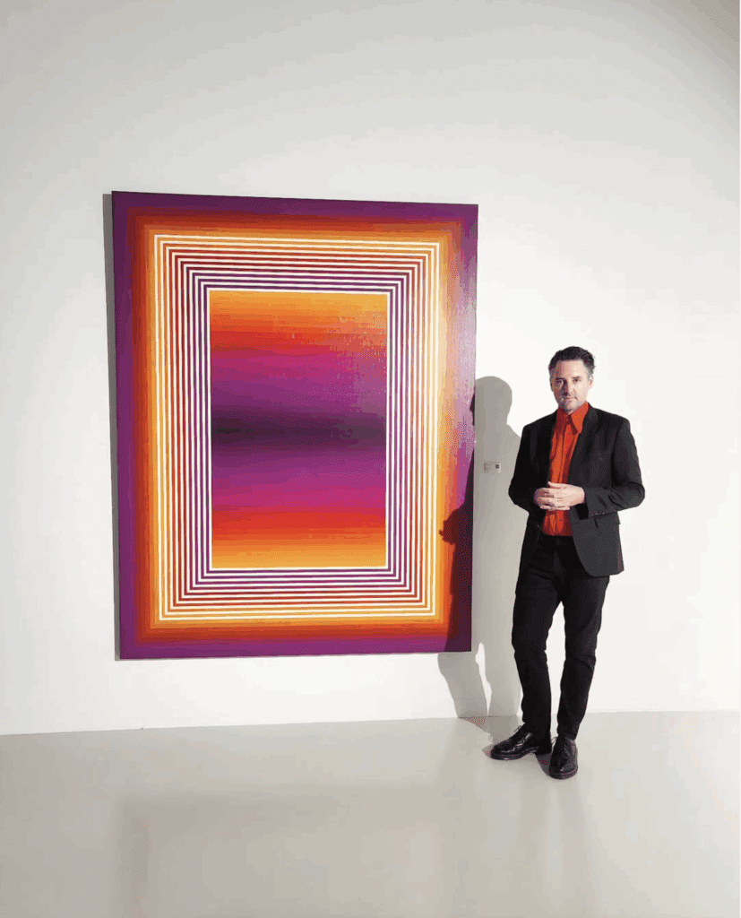 Andy Harwood, b.1983, a contemporary Australian artist, practising almost 20 years, has a design background which he harnesses to create complex mathematically derived compositions.Â