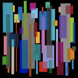 for me on the canvas, just like music does in my ears. When I paint, I do not distinguish between what I hear and what I see, it’s like a blending of the senses, a chromesthetic experience where heard sounds evoke an experience of color on the canvas. So, on some level, I hope people can experience sound when they see my work. Fourthly, I want people to be calm. Structure, form, movement, rhythm, colors, and infinite space, all work together as a whole to calm, satisfy and help us to see the world beyond ourselves. Lastly, I use geometric shapes because they are understood by people of all ages, races, nations, and cultures and I like my paintings to speak to everyone, to be easily understood by some and complicated by others.
