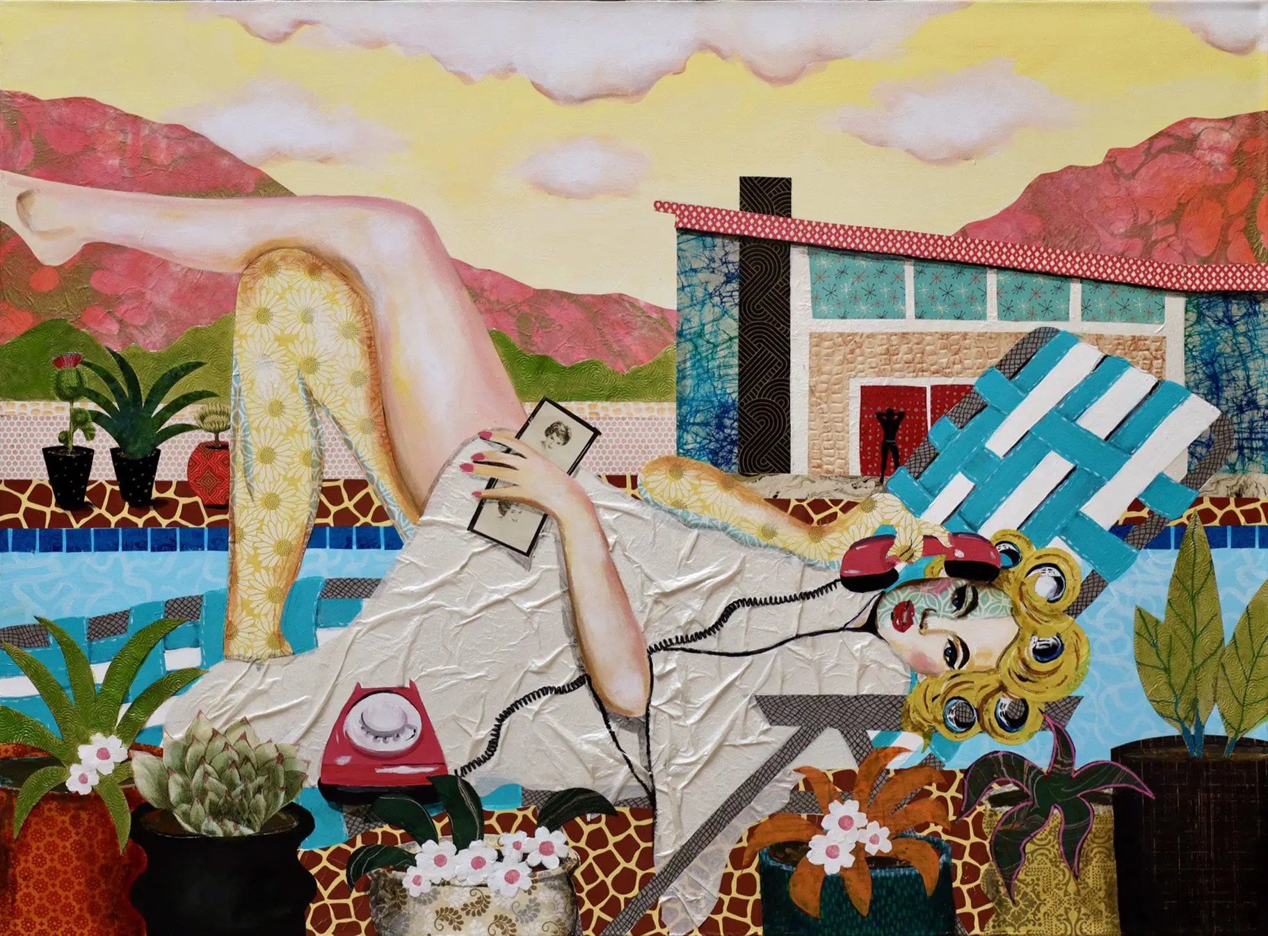 Cabell is a multimedia artist from California who currently lives and works in Brooklyn, NY. Her work is influenced by her prior career as an advertising art director–but now her goal now is to sell perspective rather than product. In her most recent series Cabell reclaims classic femininity as multi-faceted, giving voice and texture to lost imagery. Her art pushes for colorful expansion of a “woman’s place” while it explores the complex dynamic of a woman’s emotions, celebrating the bygone glamour of mid-century fashion and deconstructing its patriarchal underpinnings.