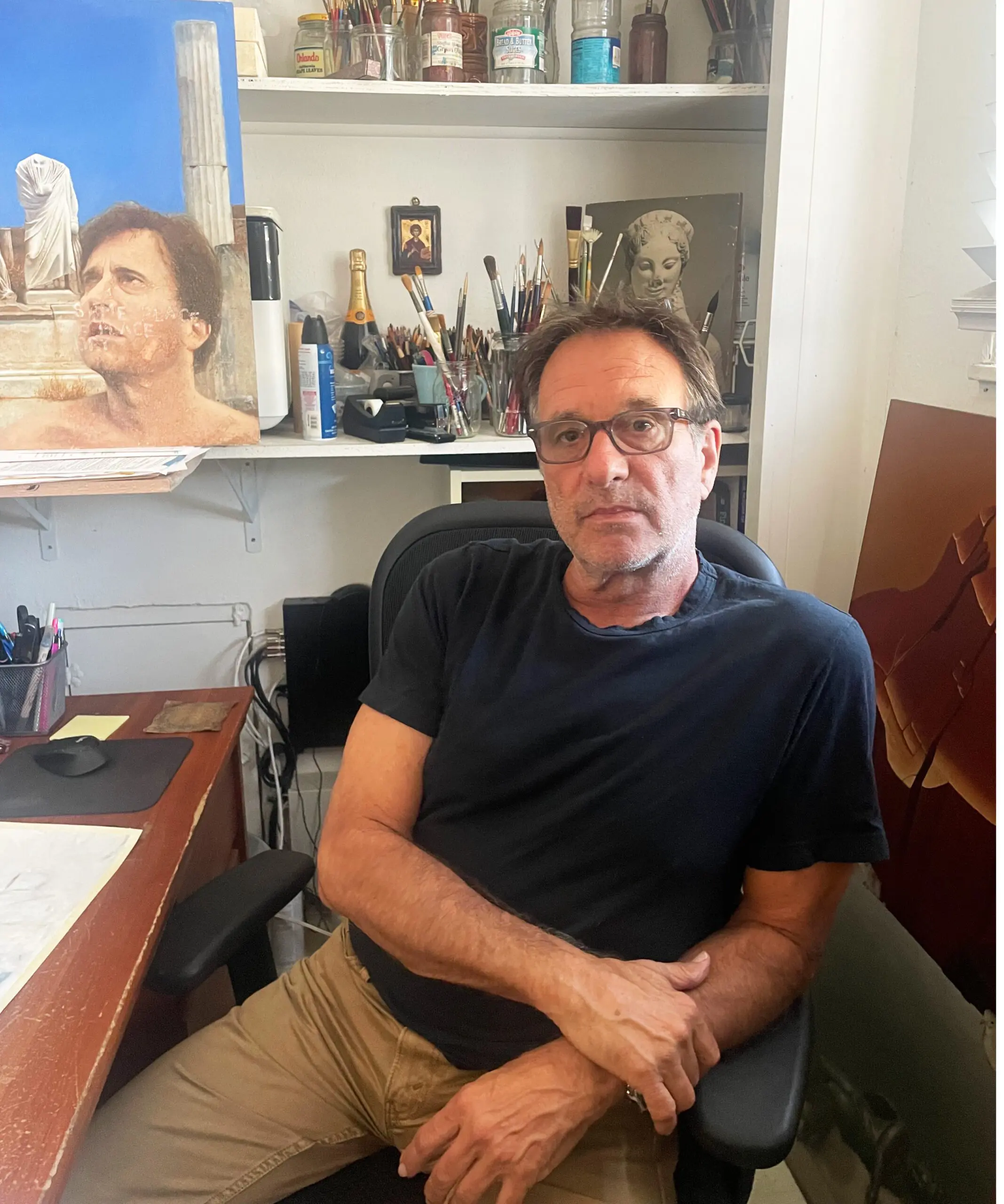 Will Binder attended UCLA Film School and graduated in 1988. After working on several Hollywood films, he became an award-winning director, winning Game of the Year for GK2: The Beast Within. Yet throughout his life, Binder never stopped drawing and painting, returning always to his first love. Today, he continues to work in Los Angeles, where he lives with his wife and kids. For Binder, a successful painting captures a personal connection between himself and his work—something difficult to put into words but instantly recognizable when viewed. The style, medium, and subject are always secondary to this connection, and every piece begins with a personal resonance that grounds the work. In An Eternal Moment, Binder works with oil on wood to capture the stillness that exists before, between and after thought—a moment of silence where past, present, and future collapse into one. The series gives Greek statues new life, treating them not as relics but as ongoing presences whose essence still resonates today. This series is deeply personal: having a Greek mother, he spent every summer of his youth with his family in Greece. Primarily an oil painter, Binder works in many other mediums: including watercolor, gouache, and acrylics. He seeks to create works that are beautiful and enduring, inviting viewers to sense both his love for the subject and the pleasure he takes in the act of painting.