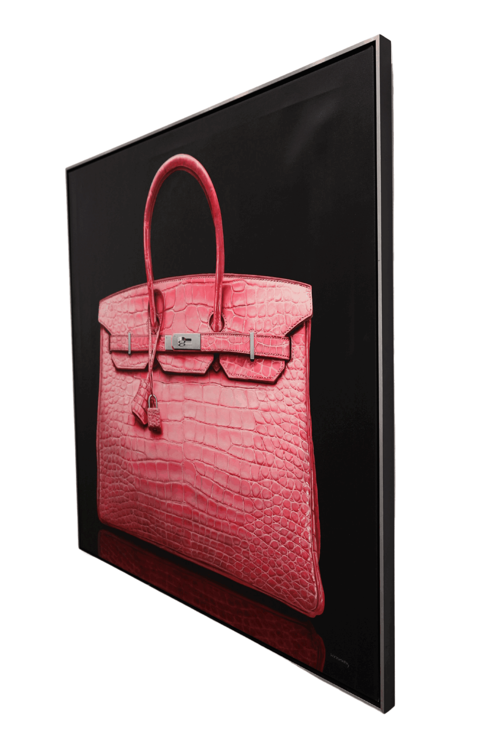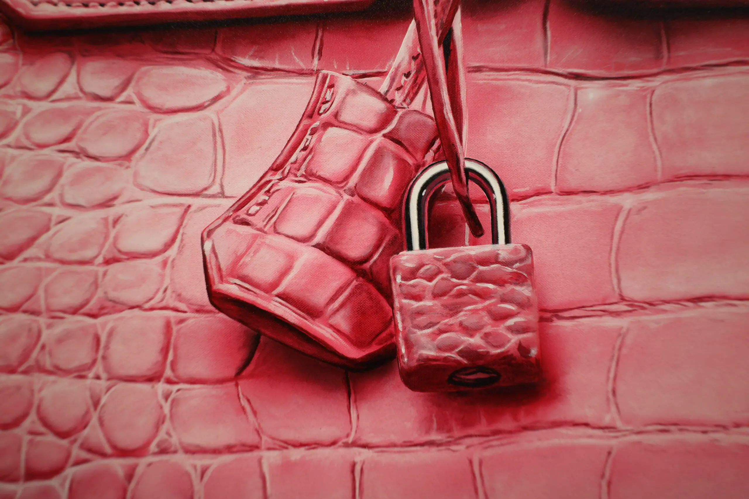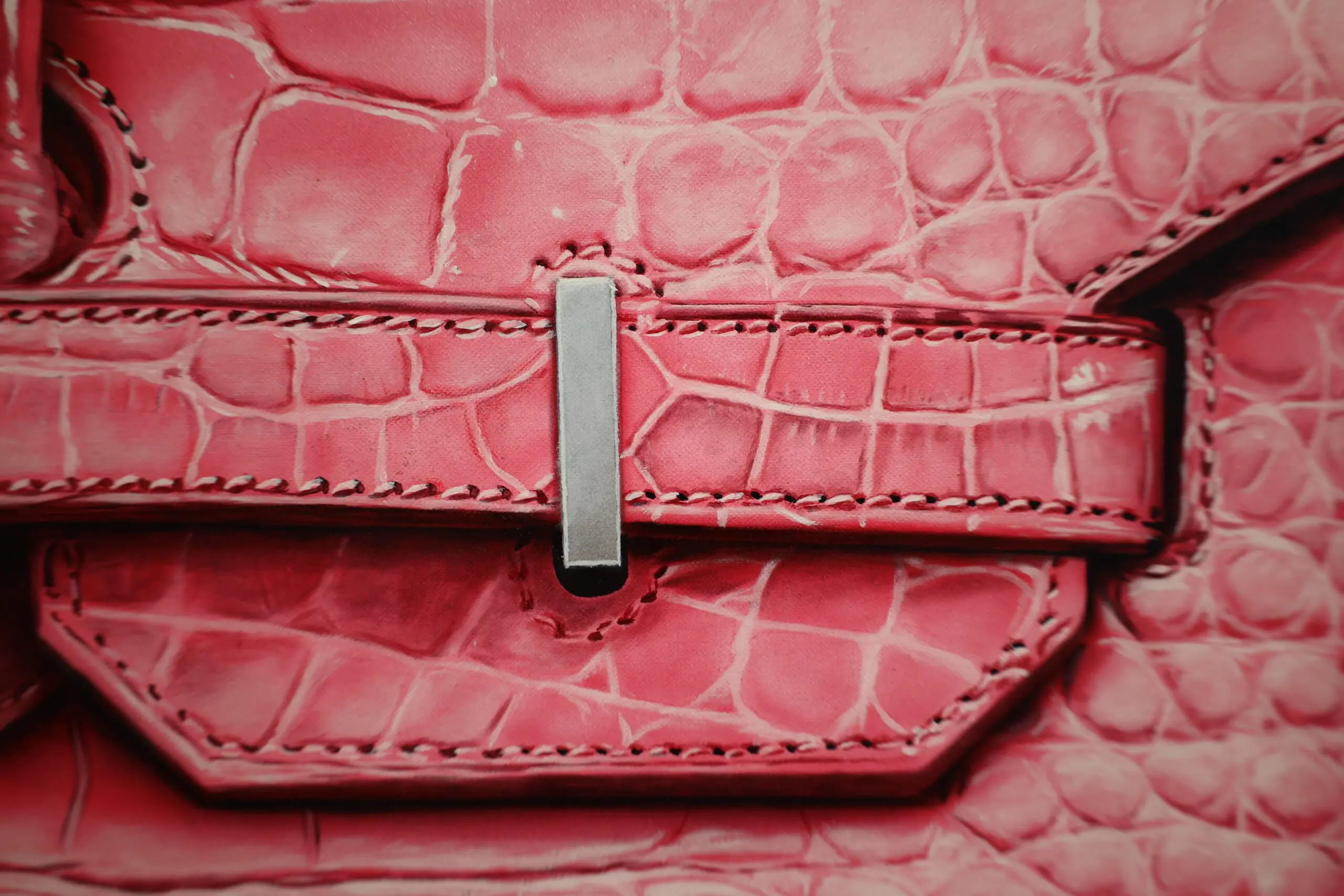 Every curve, stitch, and crease is meticulously captured, showcasing the intricate craftsmanship of the Hermès bag. The choice of crocodile leather in hot pink adds a bold and vibrant element, further highlighting the bag’s exclusivity and allure.