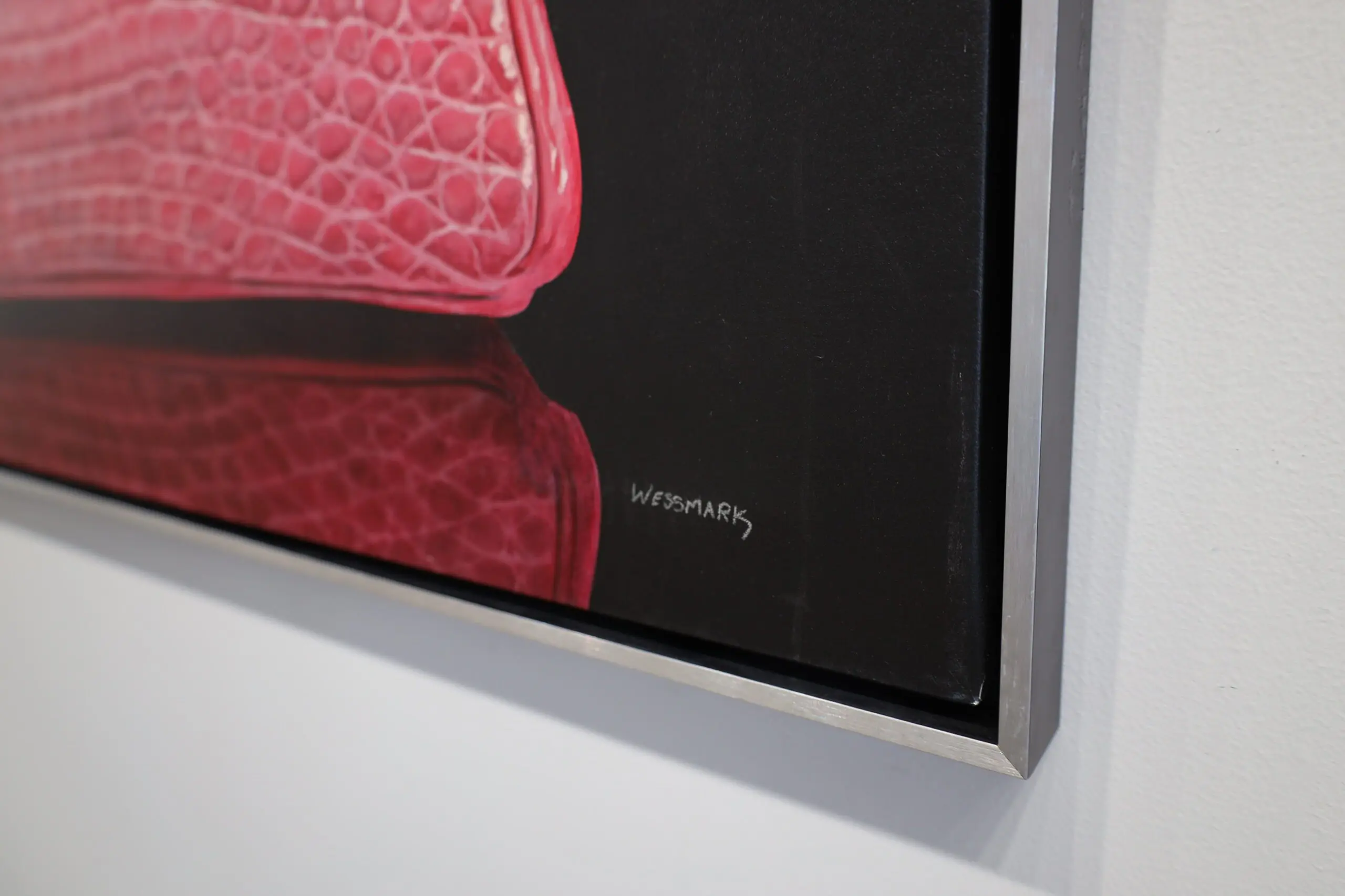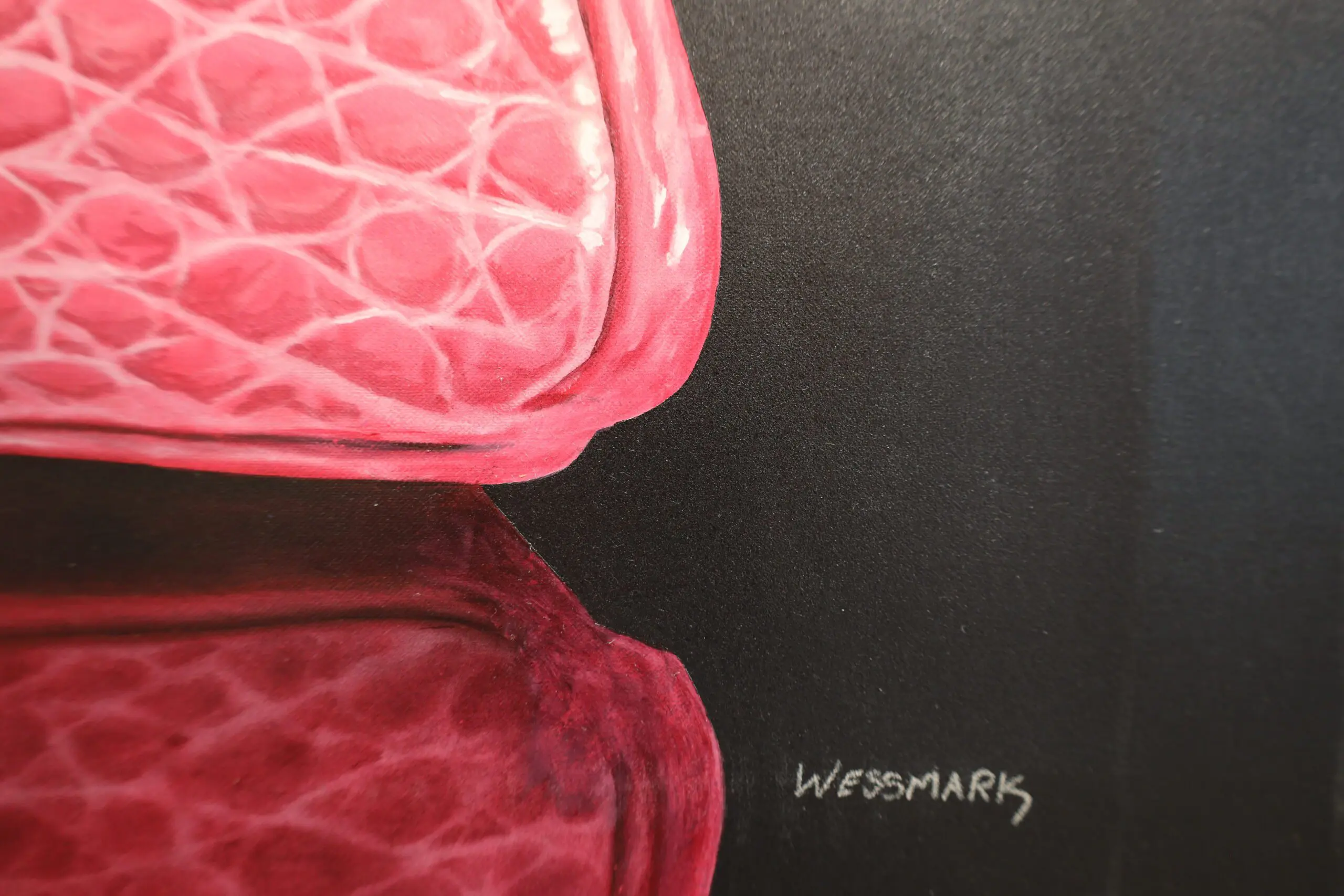The painting beckons the viewer to imagine reaching out, grasping the bag’s handle, and taking it out of the confines of the canvas.
