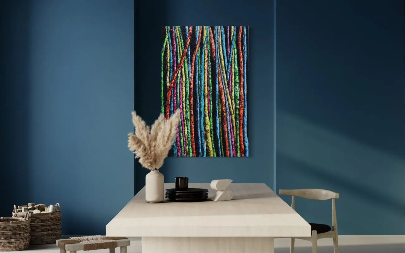 “Abracadabra” offers a bold and contemporary interpretation of nature, making it a standout choice for interior designers and art collectors looking for artwork that brings vibrancy and depth to a space. The fusion of intense colors and sculptural textures creates a dynamic, energetic presence that captures the imagination and transforms the traditional forest landscape into something entirely new.