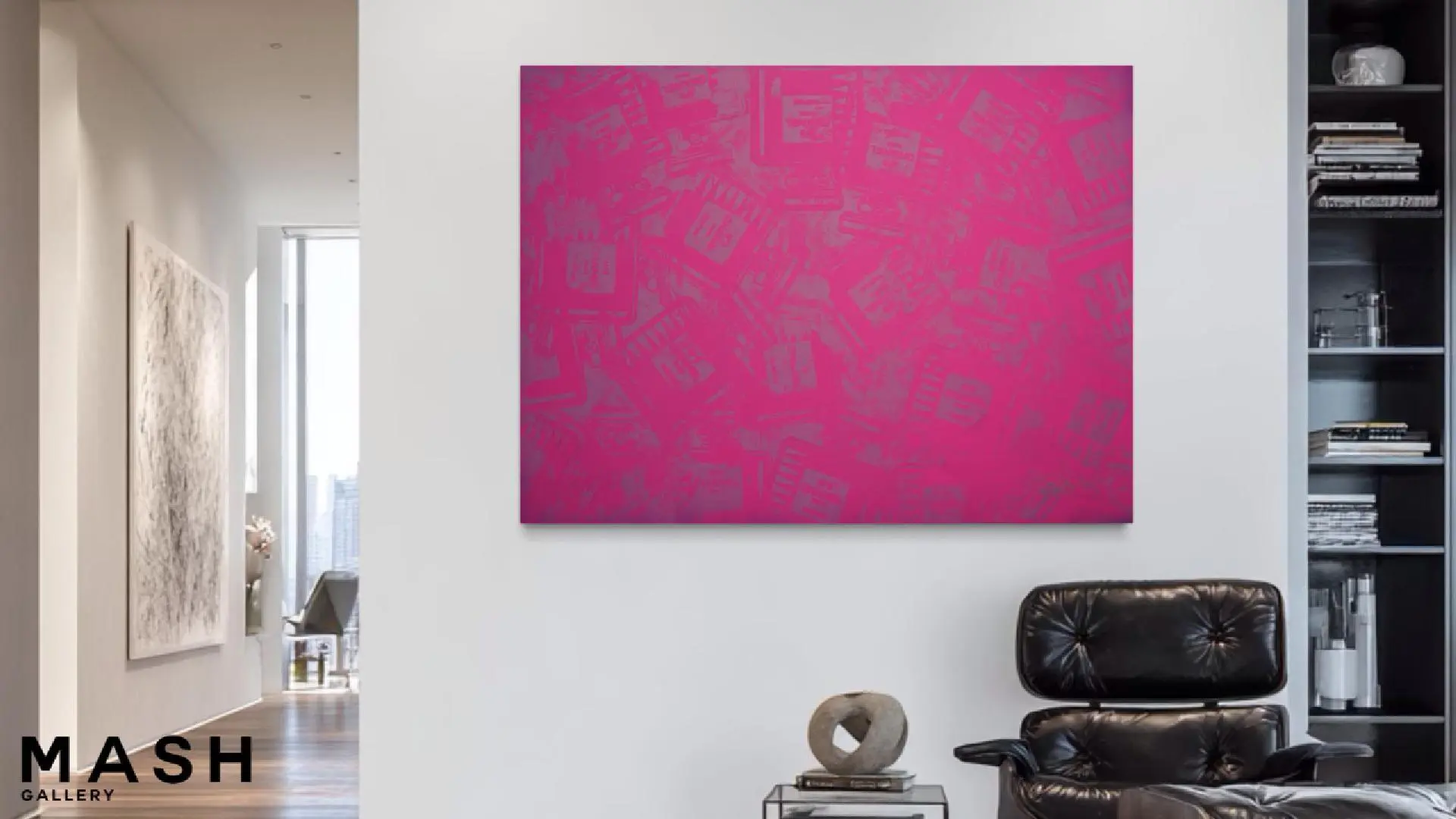 Throughout his earlier contemporary pop art works, Morris became widely recognized for crisp outlines, bold color contrasts, and instantly legible imagery connected to entertainment, sports, and popular culture. Those compositions reflected the legacy of Pop Art pioneers such as Andy Warhol and Roy Lichtenstein, whose works embraced the visual language of advertising and mass media. In Amas de Chanel (Rose), Morris expands beyond that graphic clarity. Rather than isolating the icon, he submerges it within layers of repetition and tonal depth.