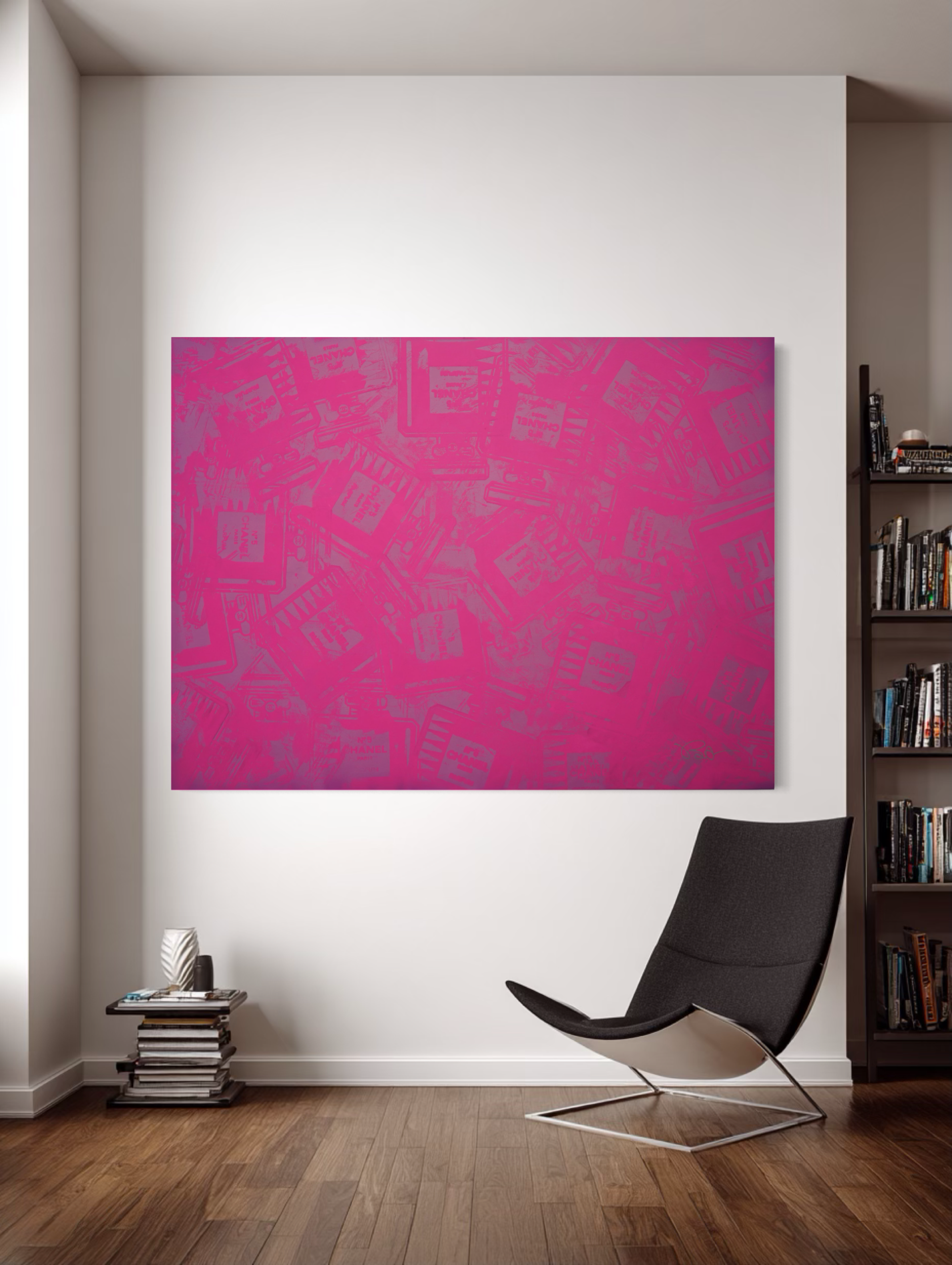 By merging silkscreen, abstraction, and luxury symbolism, Amas de Chanel (Rose) expands the language of Pop Art. The work reframes the perfume bottle as a cultural artifact, bridging fashion history, contemporary art, and the evolving dialogue between commerce and aesthetic permanence.
