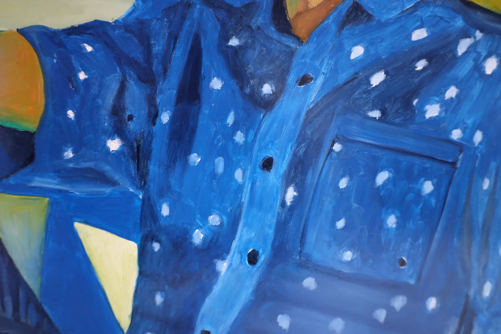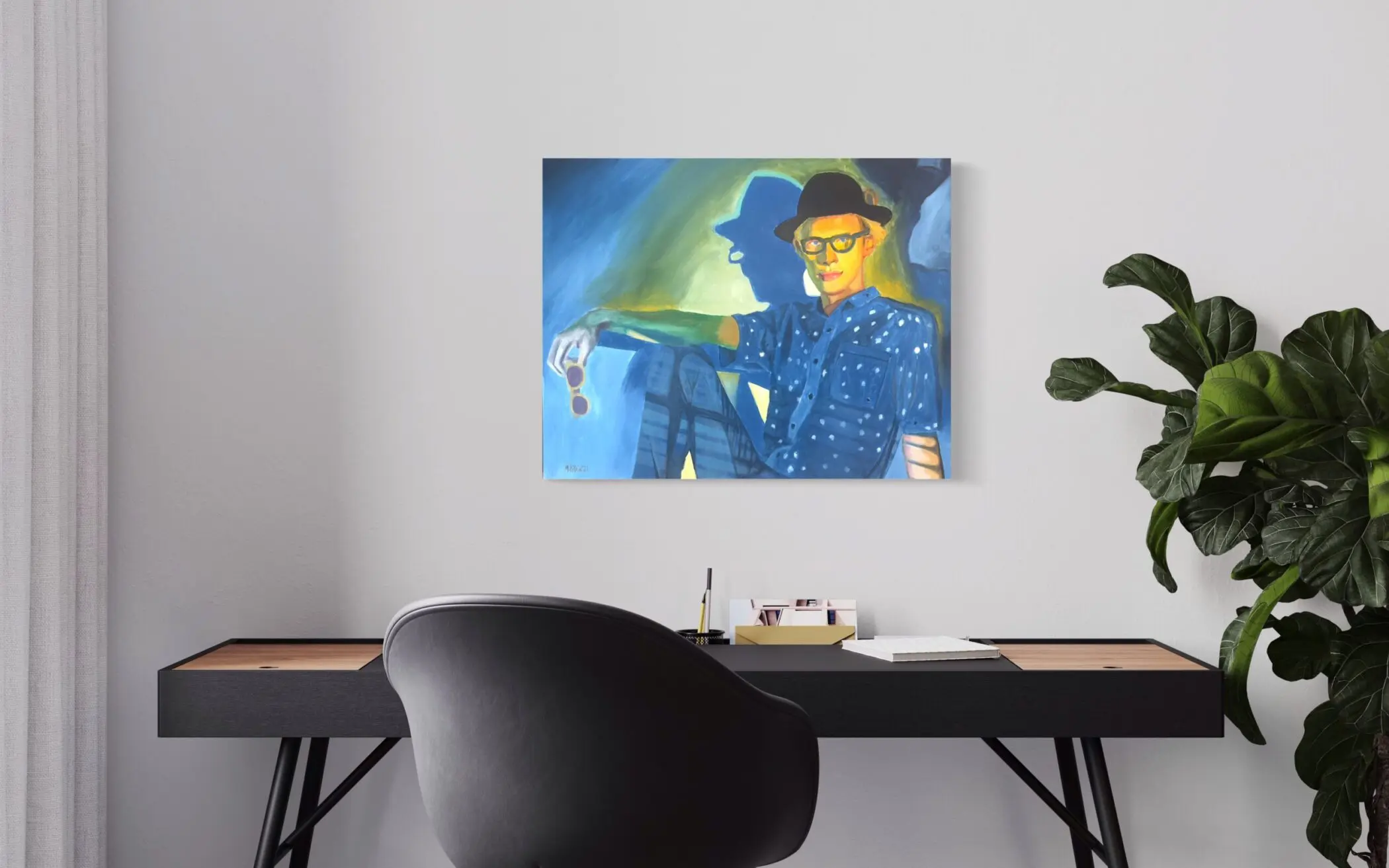 Returning to painting in 2011, he pursued a masters at the Academy of Fine Art, aiming to evoke joy in his work. Battling depression, Michael highlights life’s uplifting aspects through vibrant, imaginative themes. Living with a visual deficit, he favors bold colors and imaginative palettes. As a gay man married for 43 years, he finds strength in his relationship, influencing his artistry.