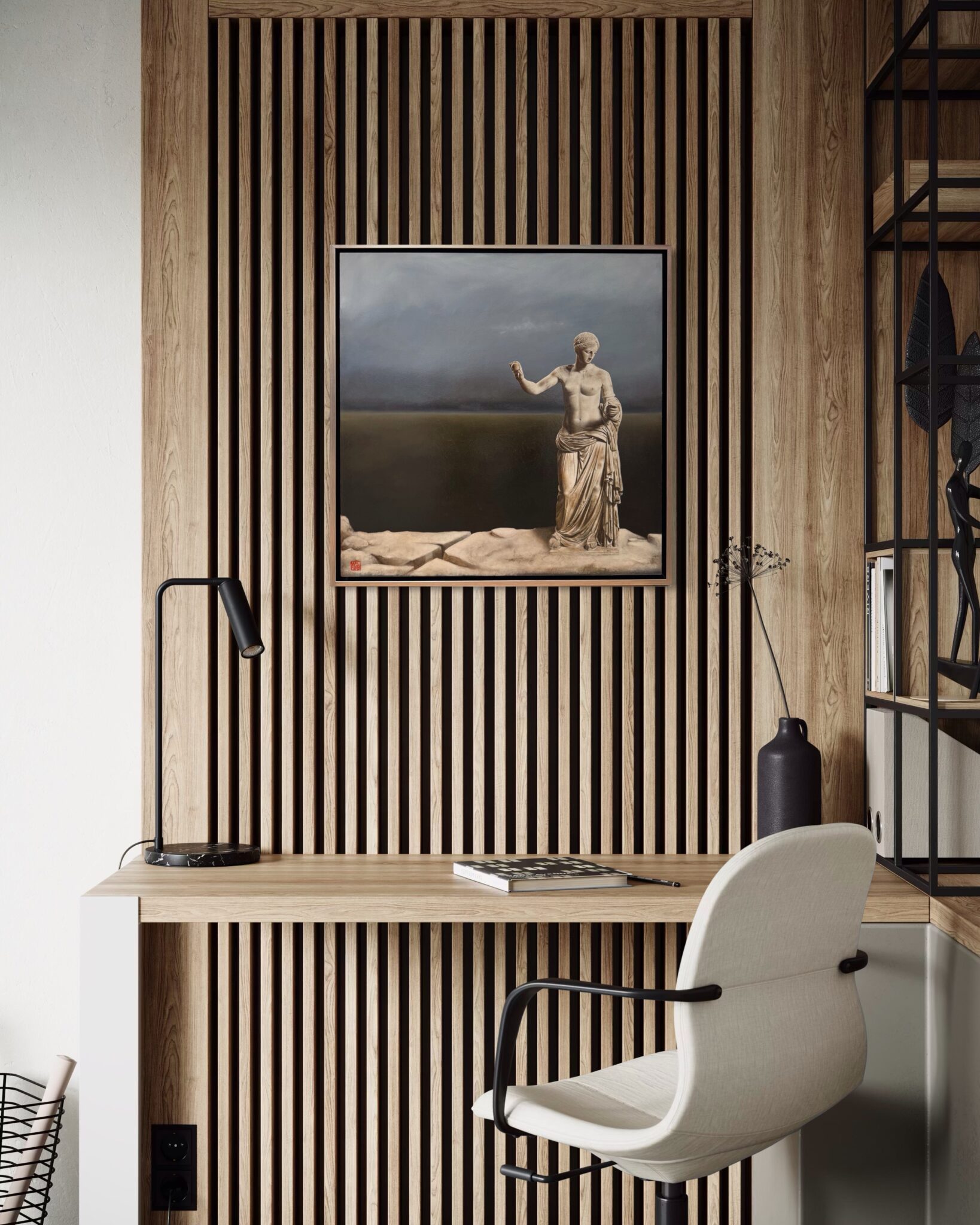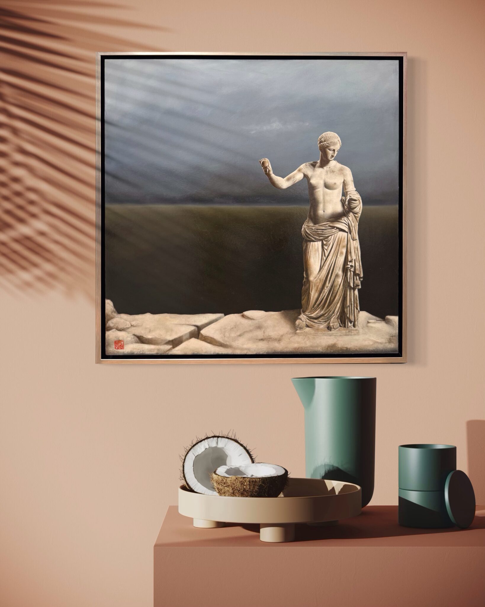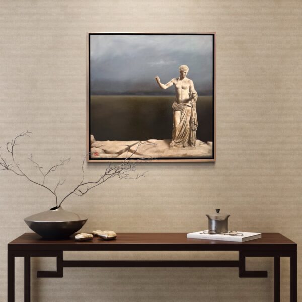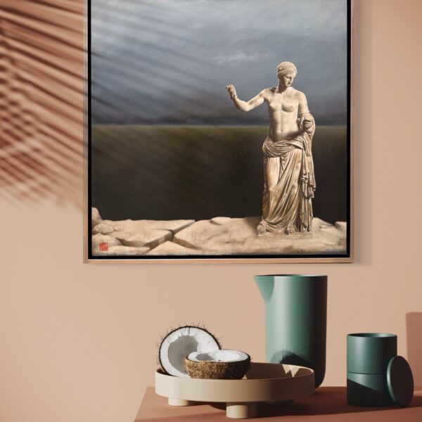 “Aphrodite” merges art history, mythology, and contemporary fine art into a single, arresting image. It is ideal for collectors seeking mythology-inspired paintings, figurative oil on wood works, and realistic depictions of iconic deities. Binder’s vision revives a lost masterpiece, celebrating the enduring power of beauty, love, and artistic imagination.