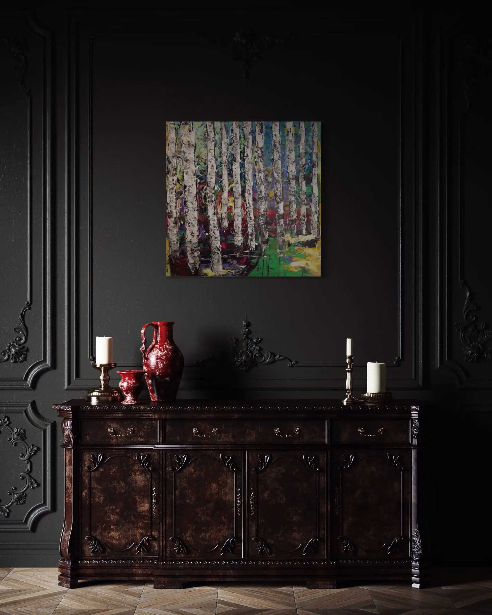 Part of her Tree Series, “Awakening” holds space for both strength and vulnerability. It works beautifully in modern interiors where texture and natural elements are embraced, especially in spaces that lean into grounded, soulful design.