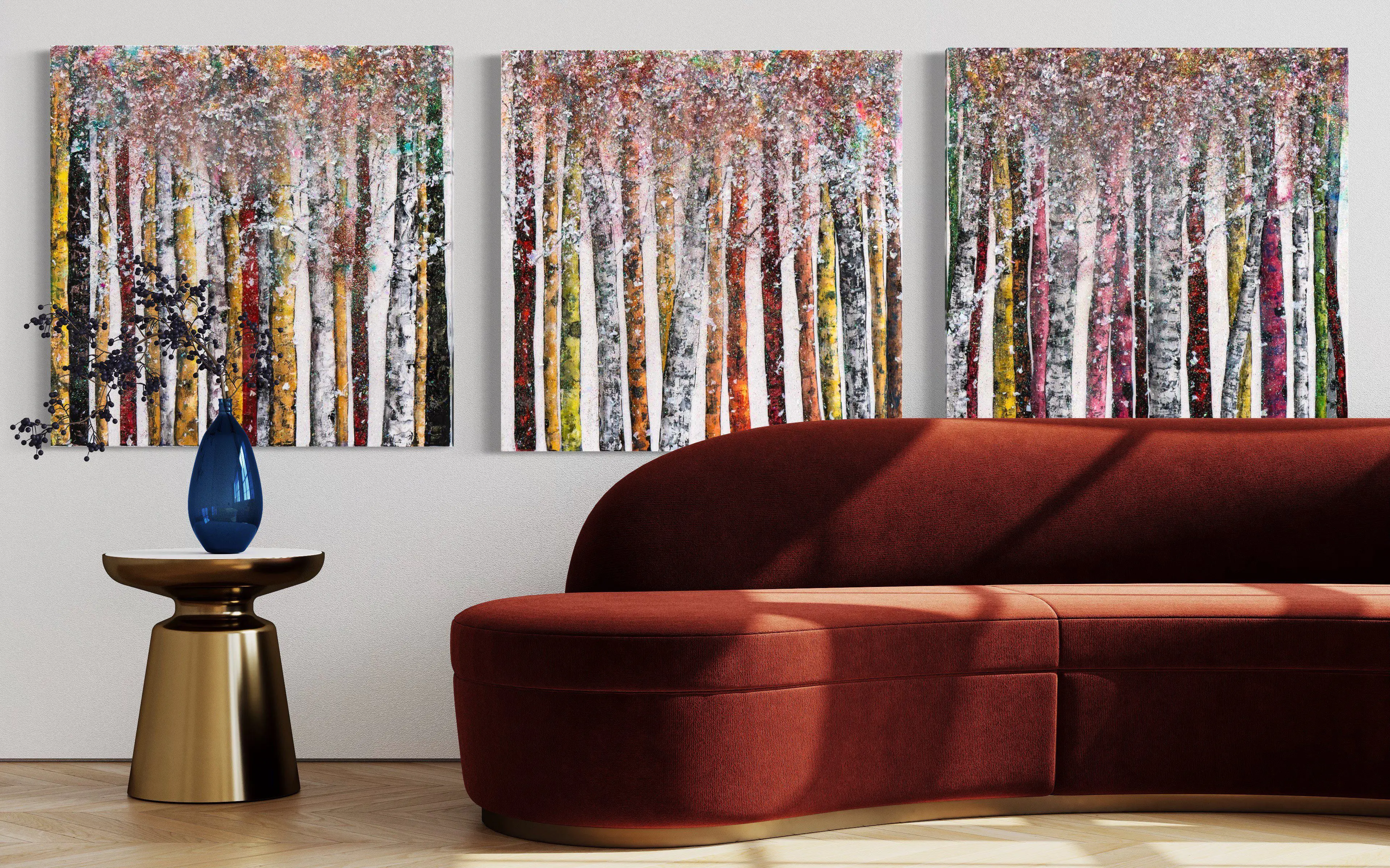 What makes “Blossoms” so engaging is its ability to evoke the fleeting beauty of nature. The trees stand tall and constant, yet the blossoms remind us of the impermanence of the seasons, gently shifting and fading with time. This piece would bring warmth and elegance to any space, making it a perfect addition to contemporary interiors or spaces that embrace the harmony of nature.