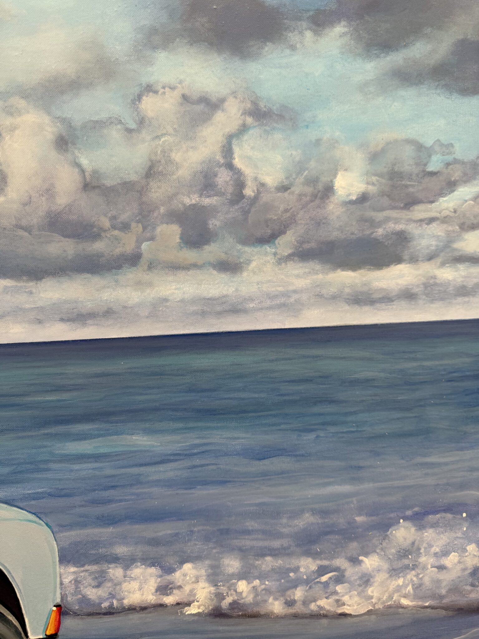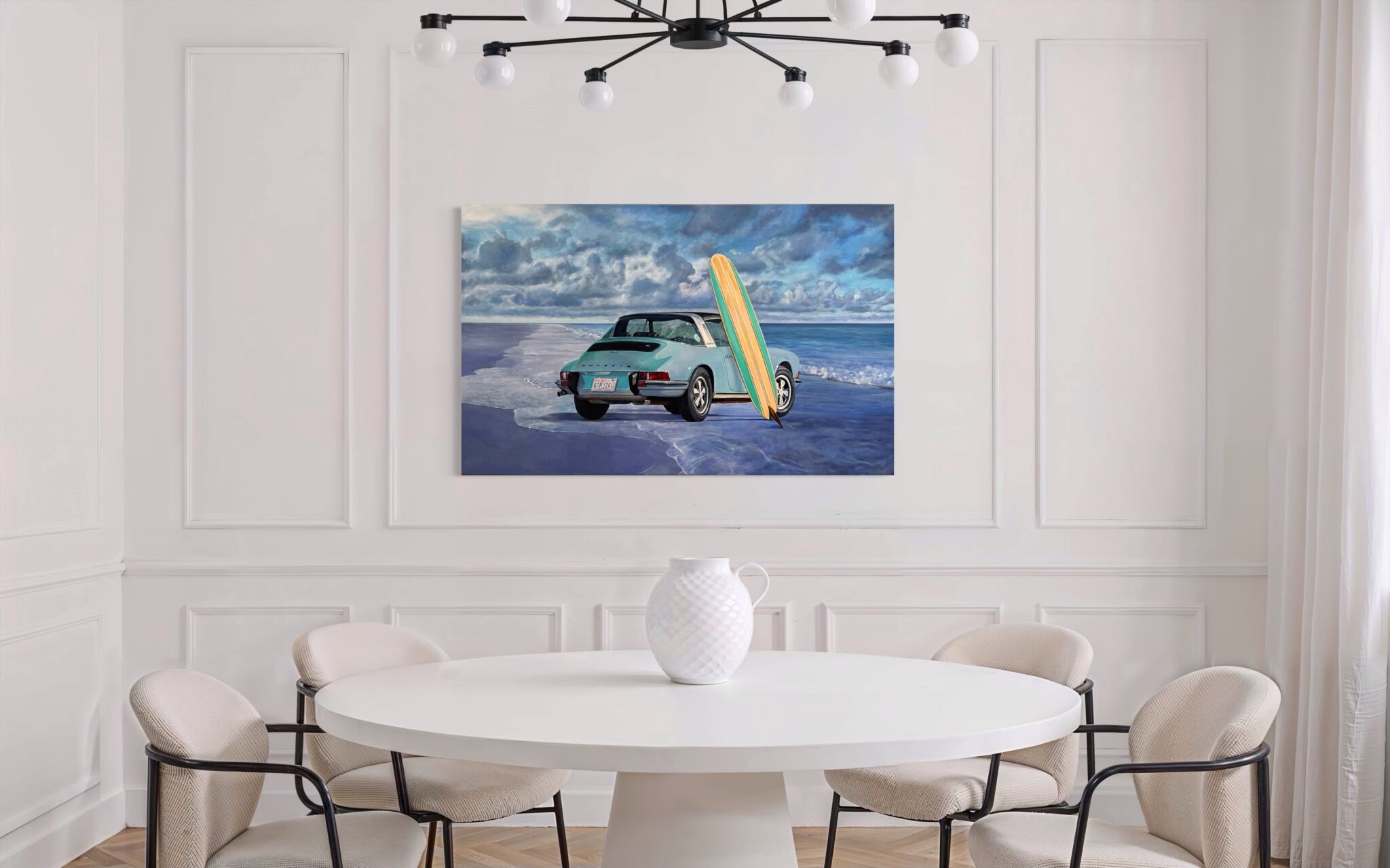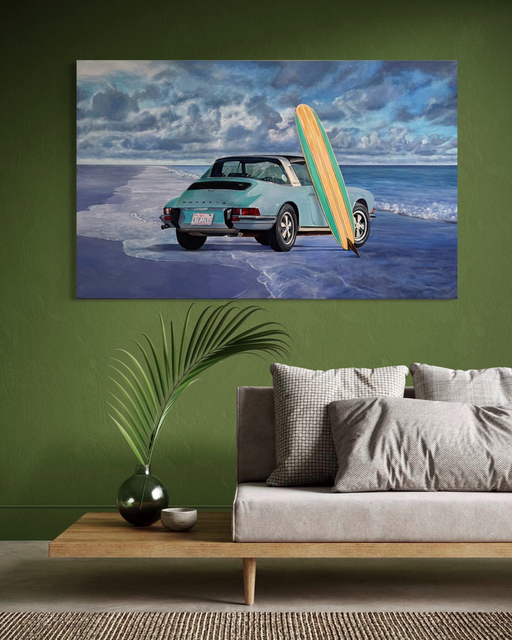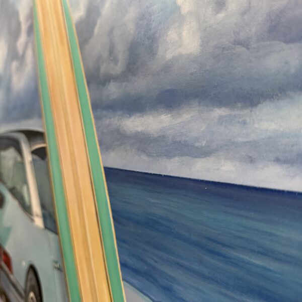 This work celebrates the intersection of vintage car culture, surf heritage, and the freedom of coastal landscapes. It not only shows a feeling, but a lifestyle. The juxtaposition of the Porsche’s refined engineering with the natural simplicity of the ocean captures a unique narrative—one where luxury and leisure meet. Perfect for collectors of automotive art, coastal-themed paintings, and large-scale contemporary acrylic works, Blue Spot is a statement piece that appeals equally to classic car enthusiasts and those drawn to the artistry of ocean-inspired scenes.