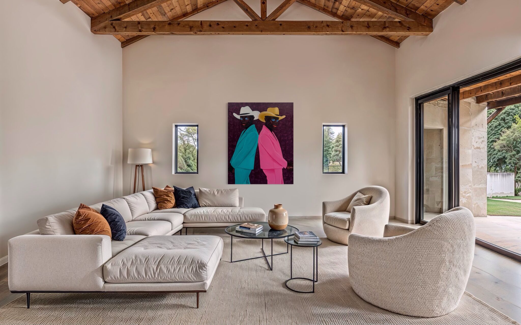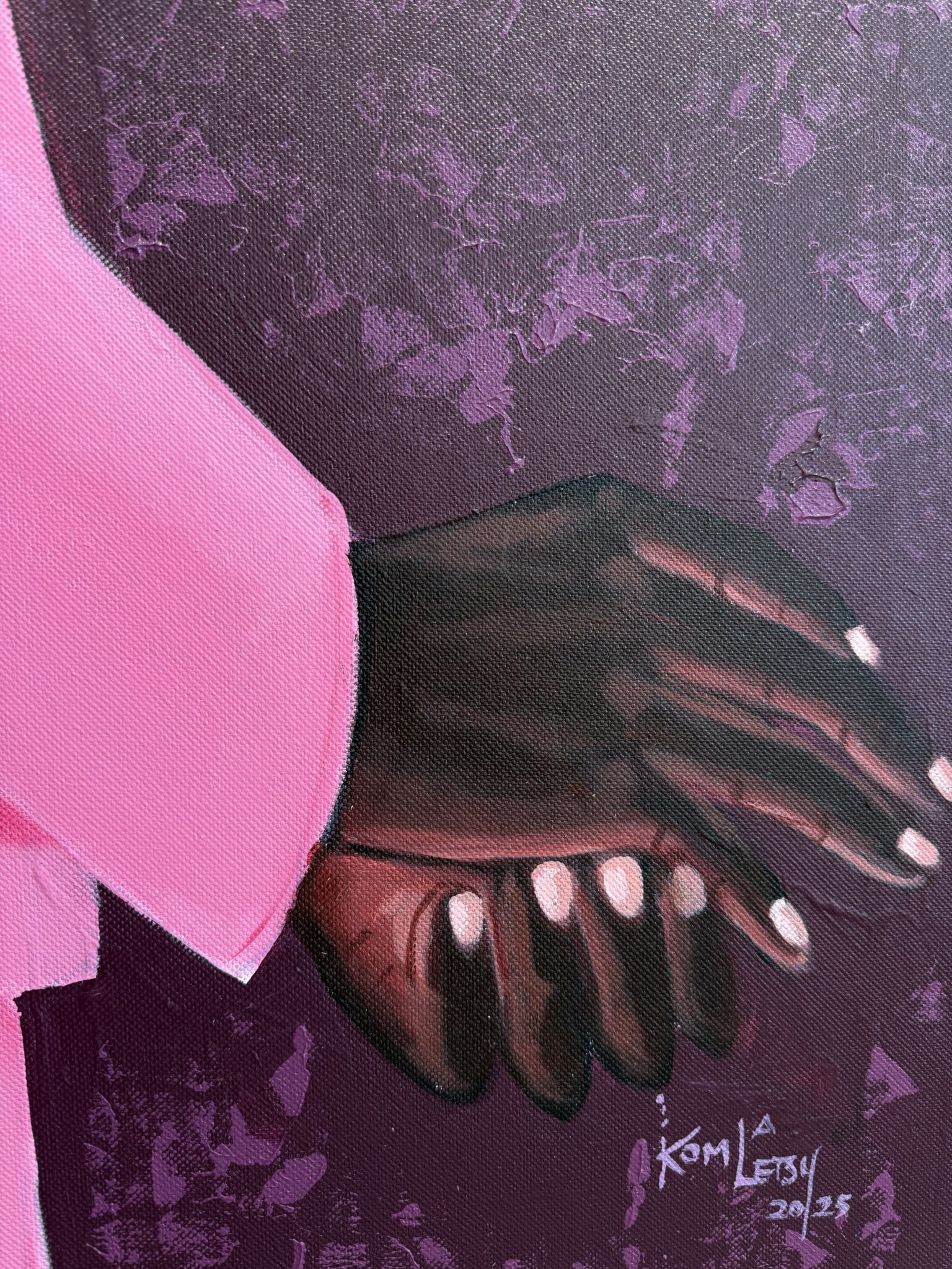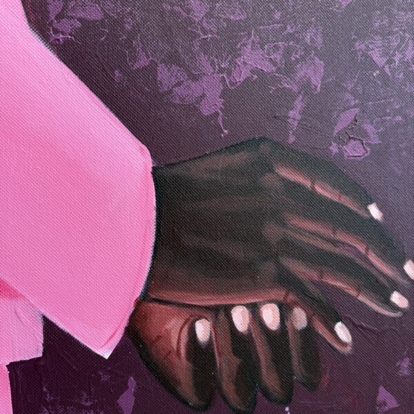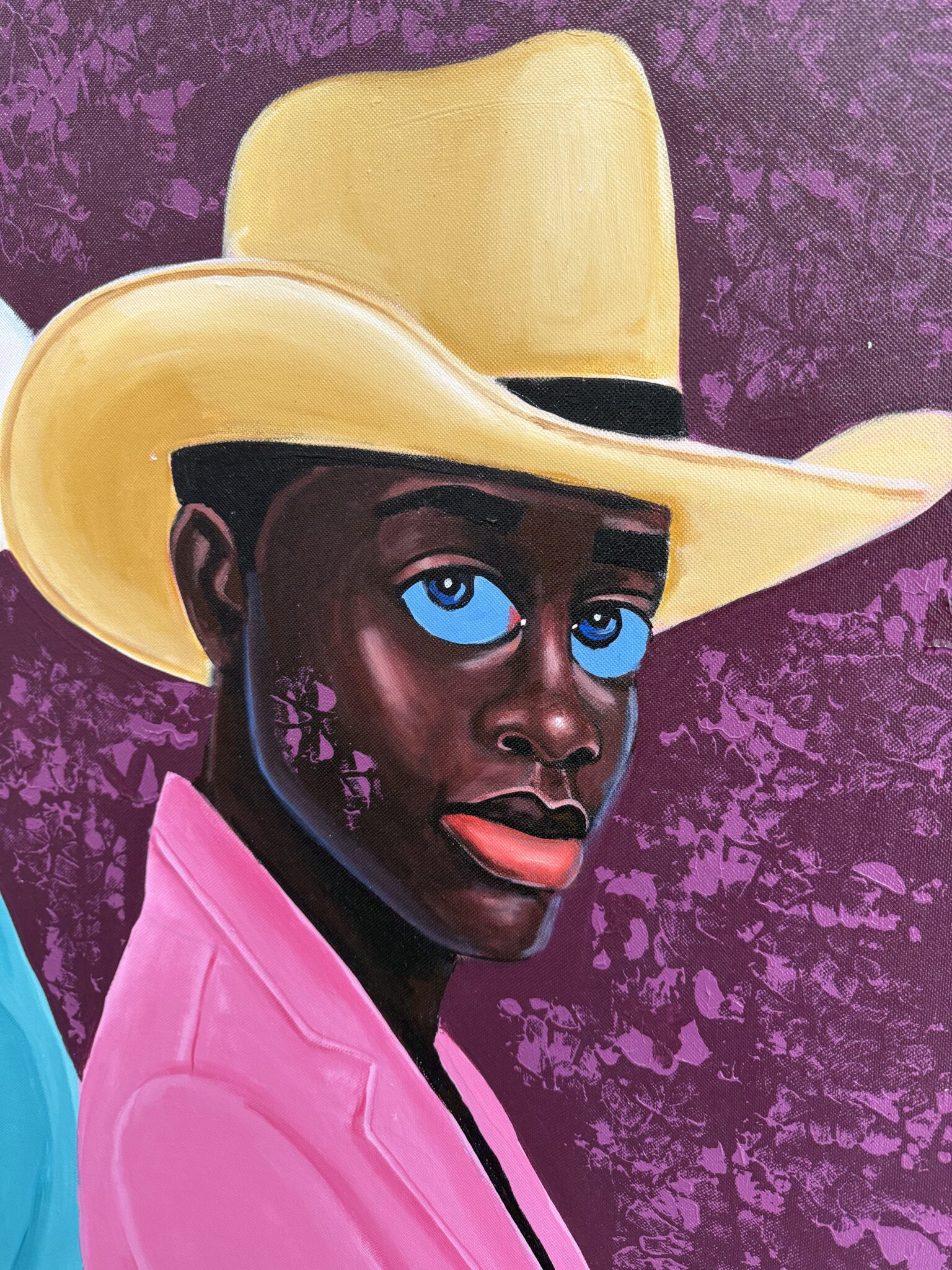 This portrait exemplifies Letsu’s ability to merge symbolism, style, and presence into a compelling narrative. The cowboy hats, often associated with rugged independence and Western identity, take on new meaning in his hands — transformed into symbols of individuality, duality, and cultural reinterpretation. By combining traditional portraiture with bold modern aesthetics, Letsu highlights both uniqueness and kinship, challenging viewers to reconsider the stories we attach to clothing, color, and posture.