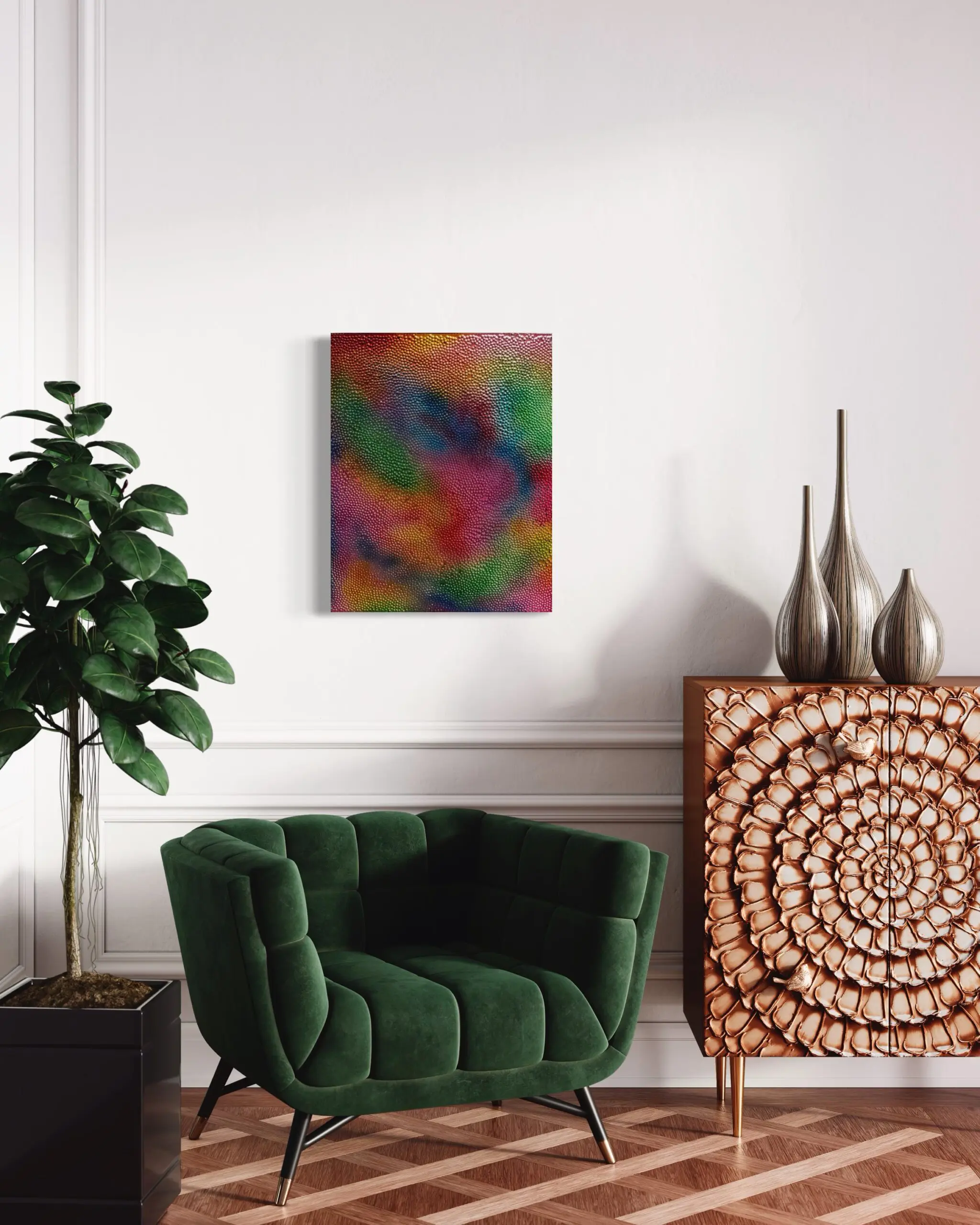This extraordinary artwork is expertly crafted on canvas, delicately layered over an artist-made panel, creating a dynamic interplay of textures. The addition of epoxy and six millimeter airsoft ammunition, meticulously applied, adds a distinctive tactile quality that invites closer inspection. The piece is adorned with a poly primer silver deposit and candy color, enhancing its visual impact and giving it a captivating allure.