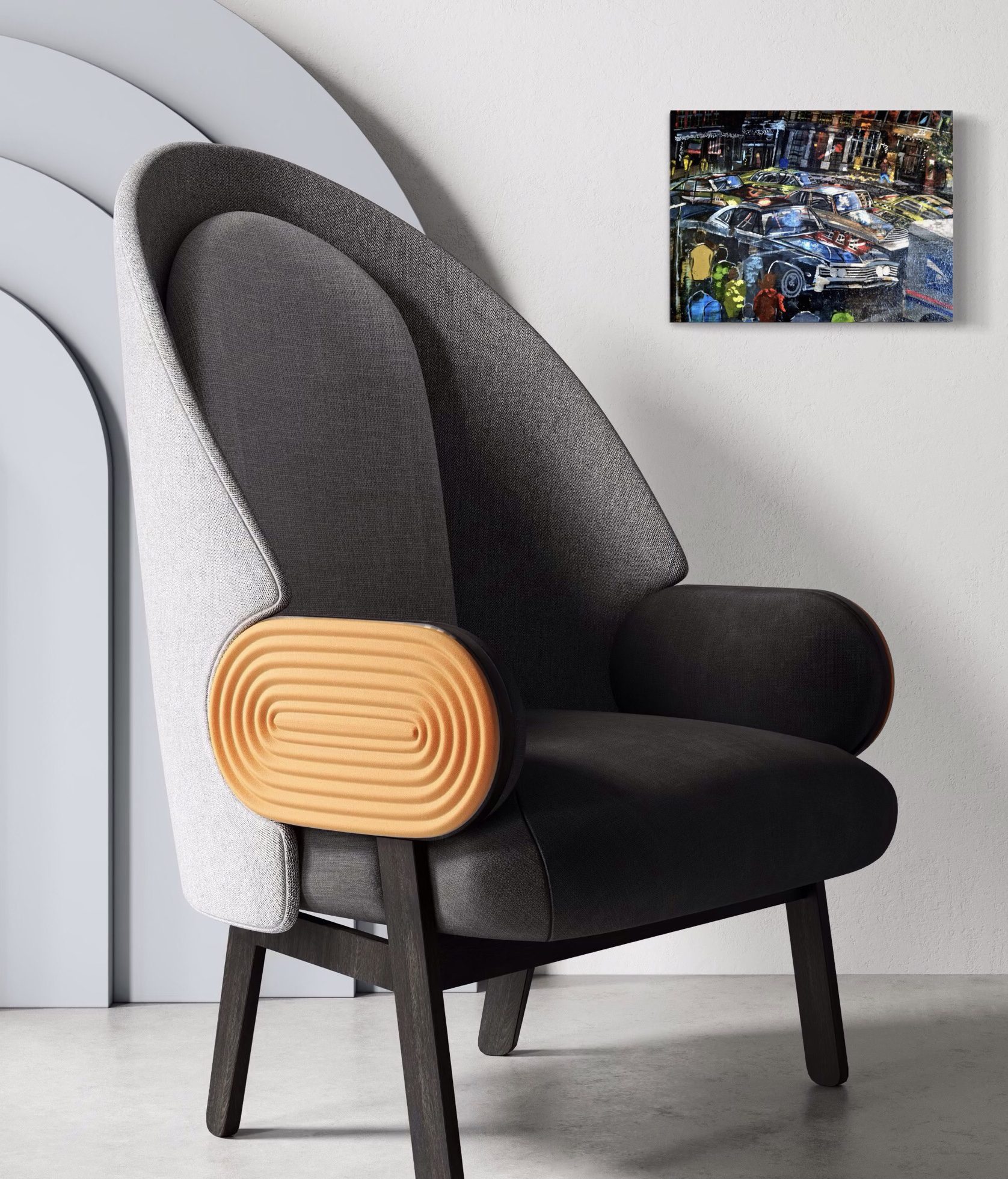 Lamme’s “City Cars” is a moody, atmospheric study of urban chaos and fleeting moments, where the interplay of light, reflection, and motion transforms a familiar street scene into an almost cinematic experience. A dense layering of blurry headlights, slick reflections, and shadowy figures immerses the viewer in the sensory overload of a bustling city night—where cars, people, and architecture dissolve into an intricate tapestry of movement and light.