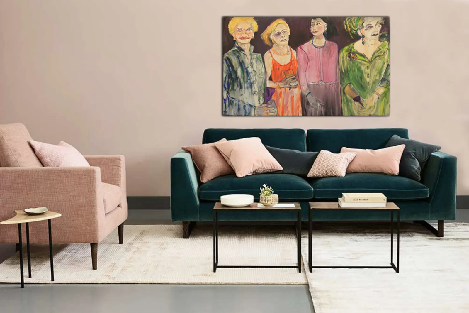 Each woman exudes a distinct energy while remaining interconnected. The fiery oranges and reds of the first two figures suggest boldness and charisma, while the cooler pinks and greens introduce an air of contemplation and quiet confidence. Their postures, casual yet deliberate, convey the effortless elegance of women who know their worth. The loose, gestural brushwork enhances the sense of movement, as if we’ve caught them mid-conversation—exchanging glances, sharing stories, or indulging in a moment of collective amusement.