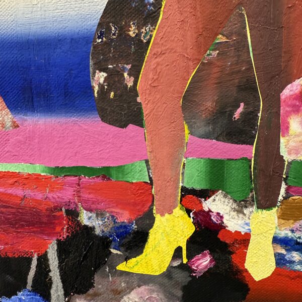 “Disintegrate My Blue Skies” is ideal for collectors who value contemporary figurative art that merges abstraction with storytelling. It is a celebration of resilience, connection, and the ability to find beauty and balance amidst the chaos of the outside world.