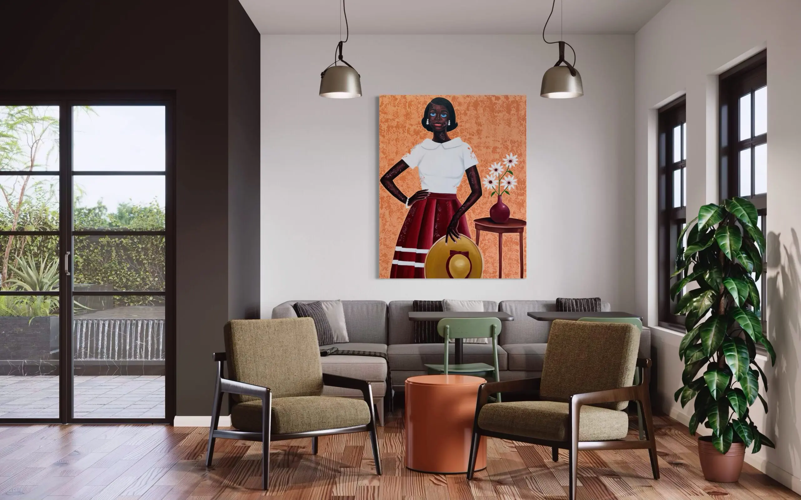 This work exemplifies the power of Ghanaian contemporary art, where portraiture becomes more than likeness — it becomes narrative. Known for his bold figurative paintings, Philip Letsu bridges cultural heritage with modern aesthetics, transforming everyday subjects into icons of pride and individuality. His ability to merge symbolic detail with vibrant color has established him as a rising name in the Los Angeles contemporary art scene and a featured voice at the West Hollywood art gallery, where his work resonates strongly with collectors and curators seeking meaningful examples of modern portrait painting.