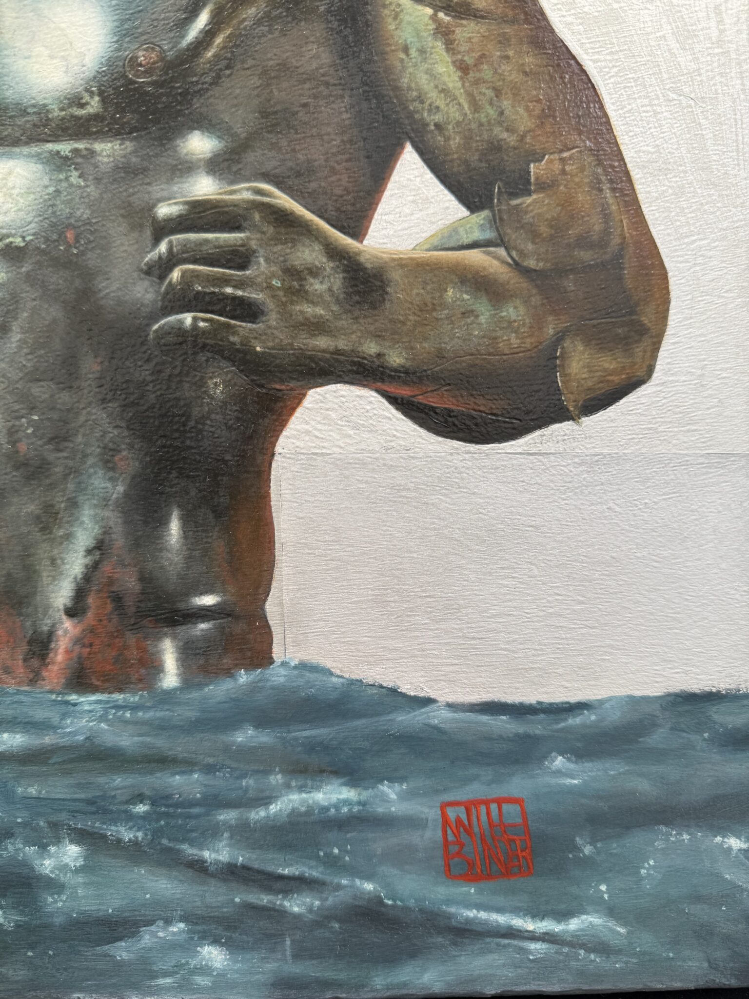 “East Meets West” is ideal for collectors interested in mythology-inspired art, realistic classical sculpture paintings, and fine art that explores the intersection of history and modernity. It demonstrates Will Binder’s ability to combine narrative depth, technical skill, and cultural dialogue in a single, cohesive work.