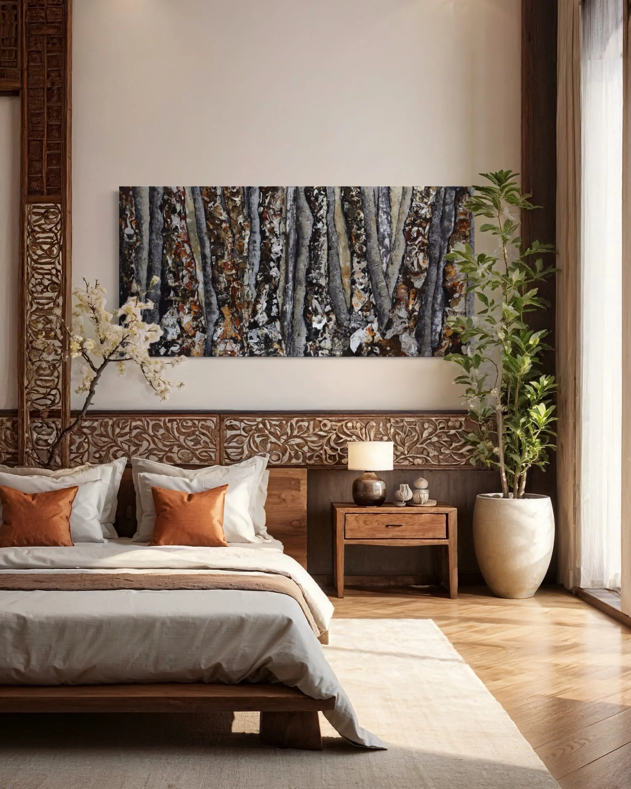 Perfect for collectors and interior designers seeking impactful, nature-inspired artwork, “Ember Echoes” blends abstract expression with organic forms, creating a visually rich experience that brings warmth and depth to any space.