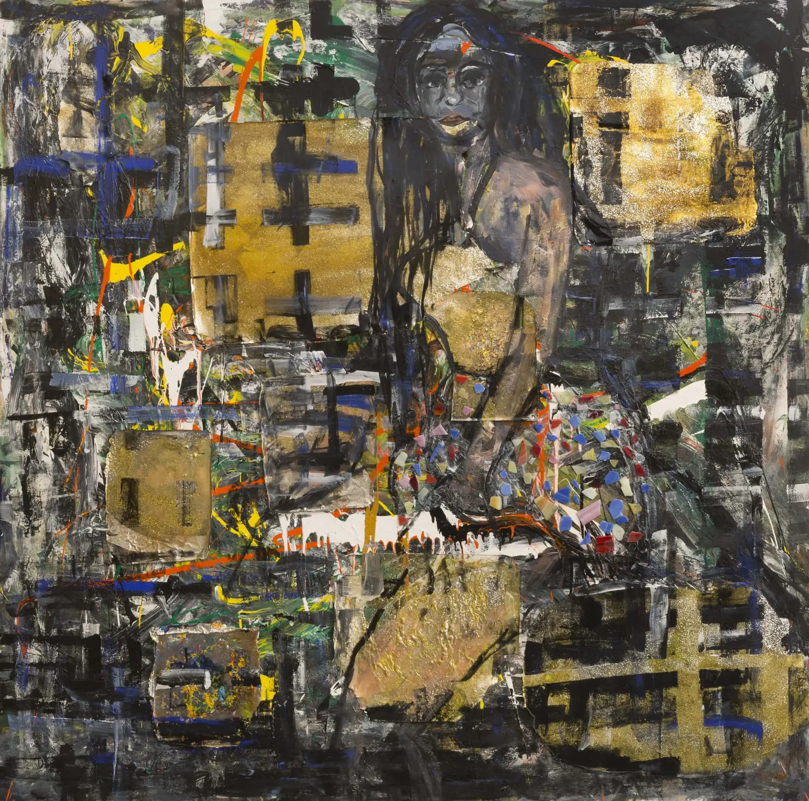 2018 Mixed media collage on wood panel 60 x 60 in 152.4 x 152.4 cm