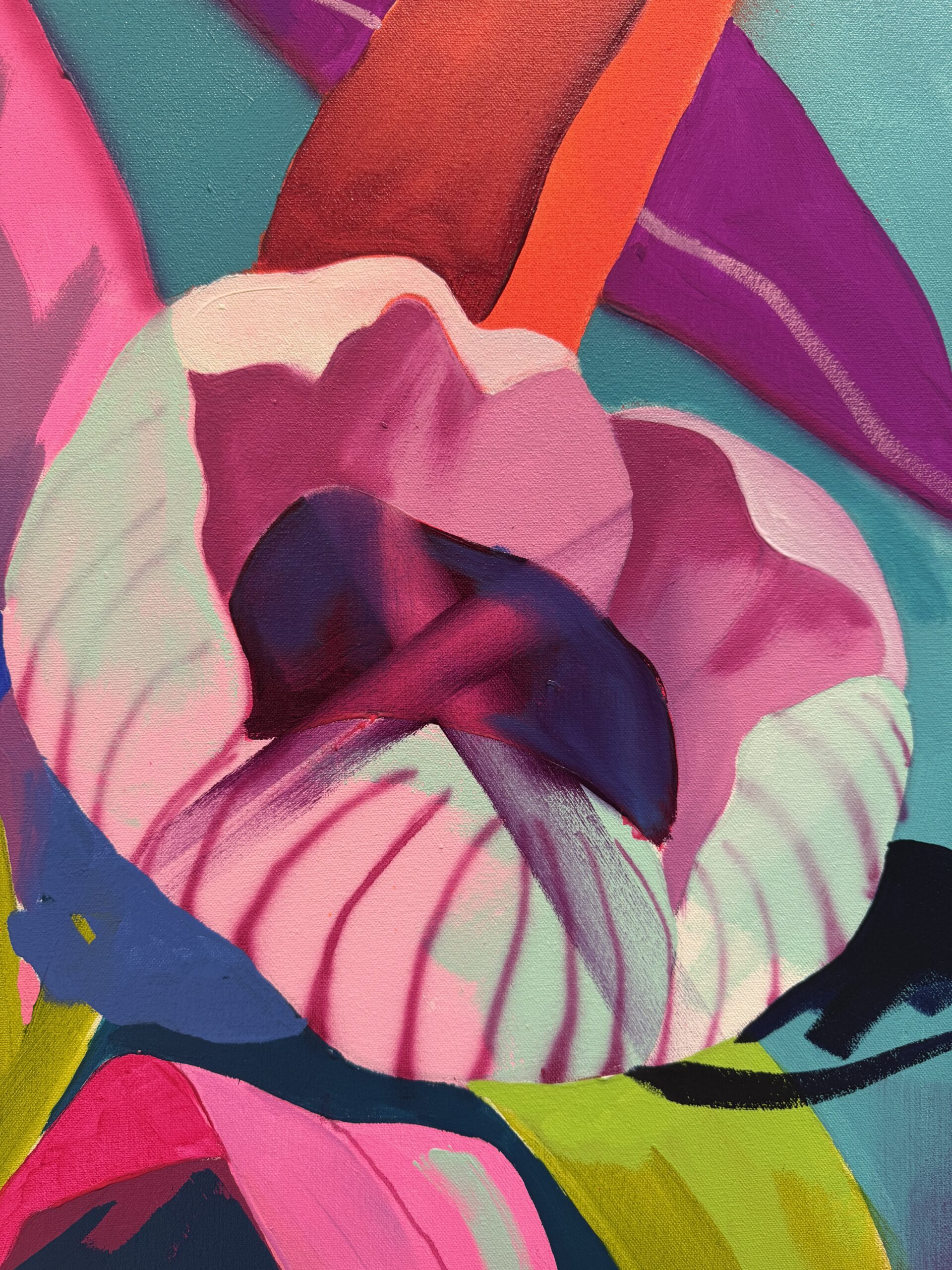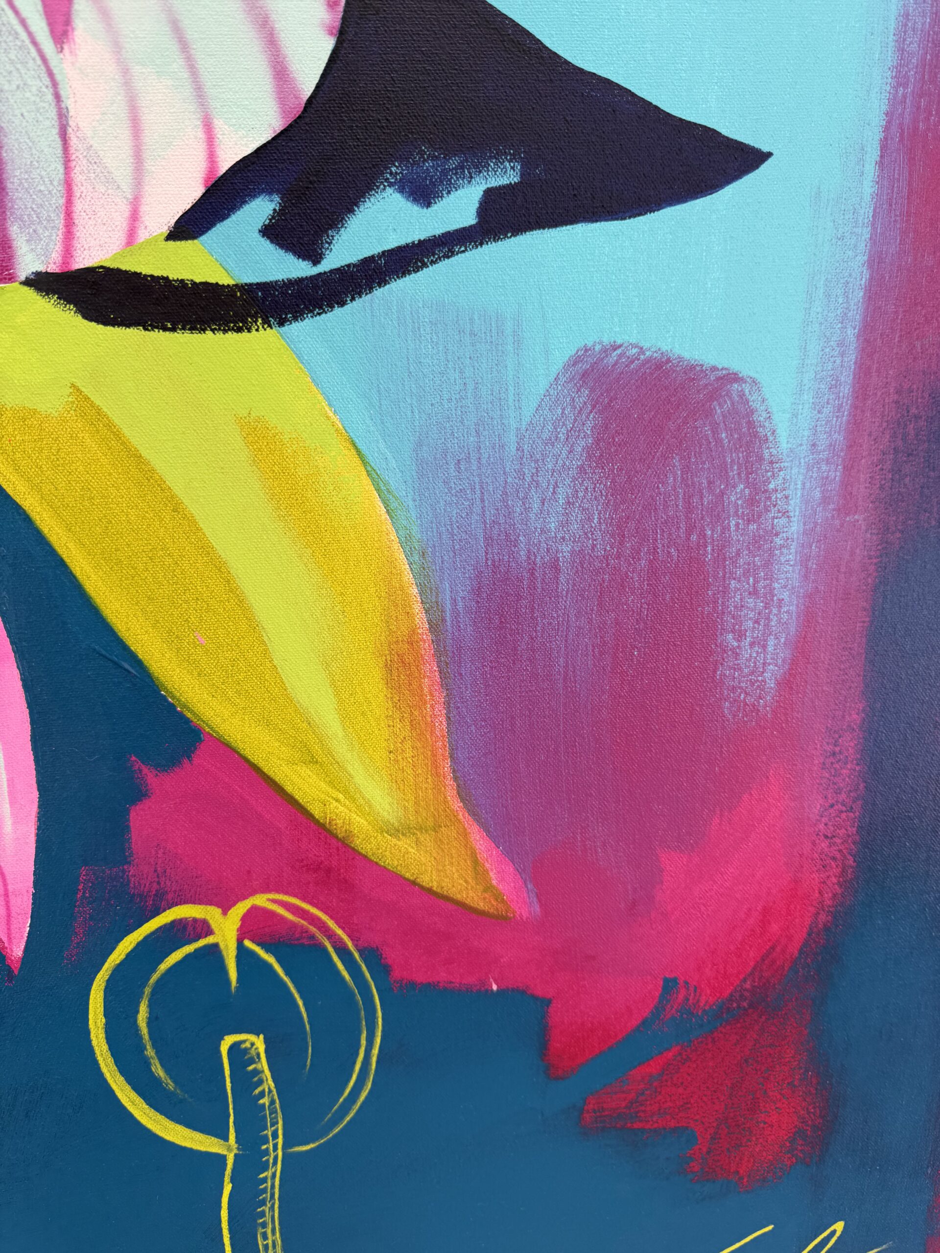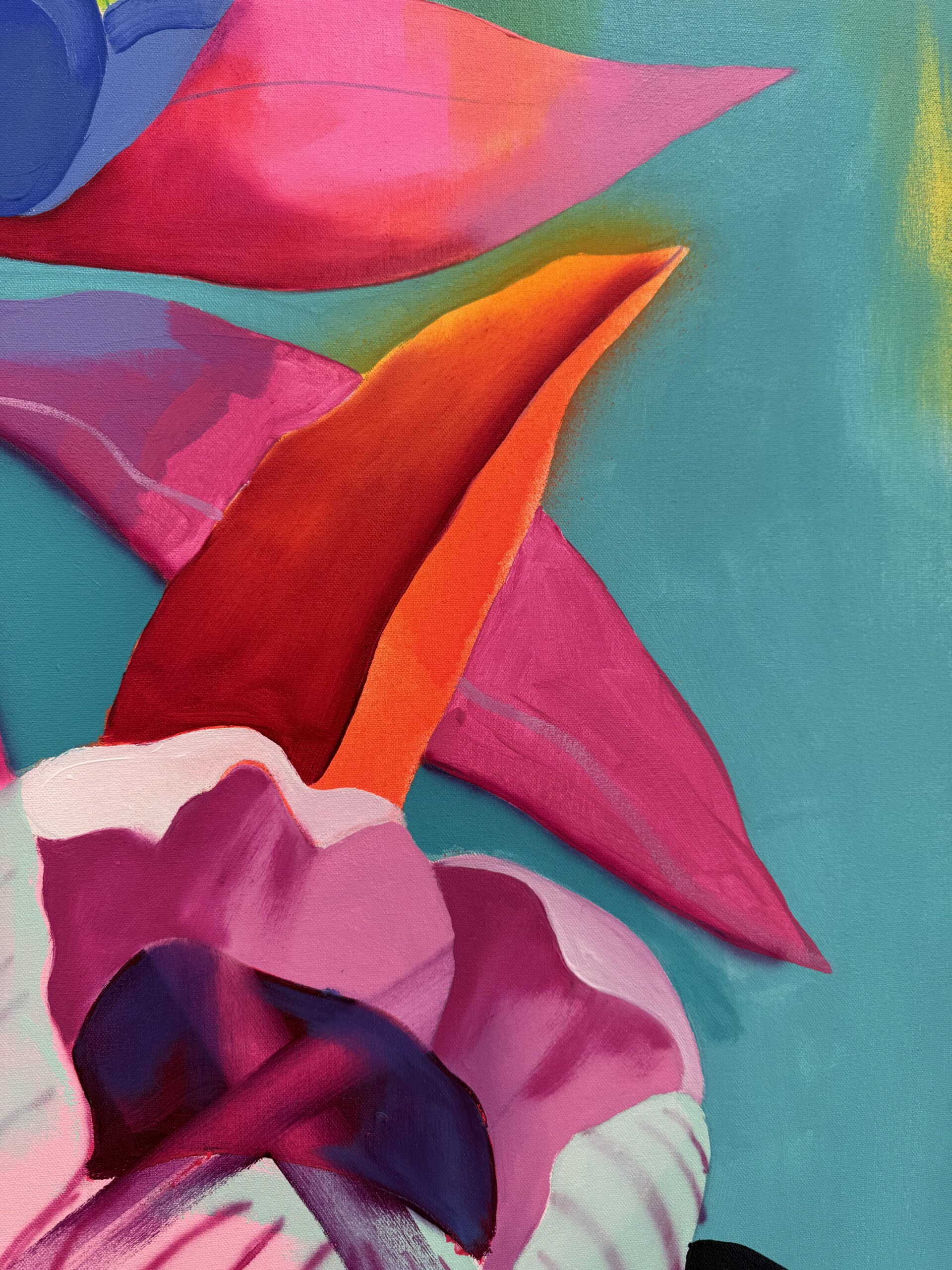 Fowler’s signature bold color blocking, layered textures, and expressive distortions create a work that feels both raw and refined. “Green Tea” challenges the viewer to consider nature not just as it is, but as it could be—intensified, reimagined, and alive with vibrant possibility. It is a celebration of organic form through a contemporary, urban lens, making it an unmistakable statement piece in the realm of modern botanical art.