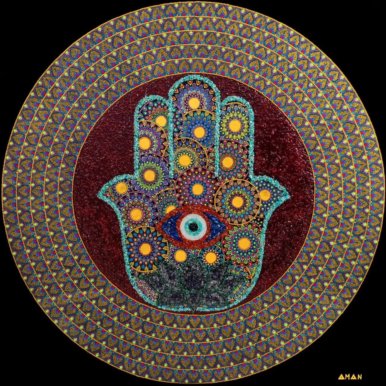 Aman’s art is a unique representation of how art can create the bridge to protection to the spiritual world. As a child, Aman was fascinated with the unknown and found that his paintbrush was the key to tapping into his visions. Aman began painting at a very young age. His paintings are unlike any other paintings ever seen before. Aman’s paintings represent Middle Eastern, Egyptian, and Indian history through his uncanny talent of creating sculptures on canvas. Every painting Aman has created tells a story about the fortification of the spiritual realm that creates the path to live a full and prosperous life.