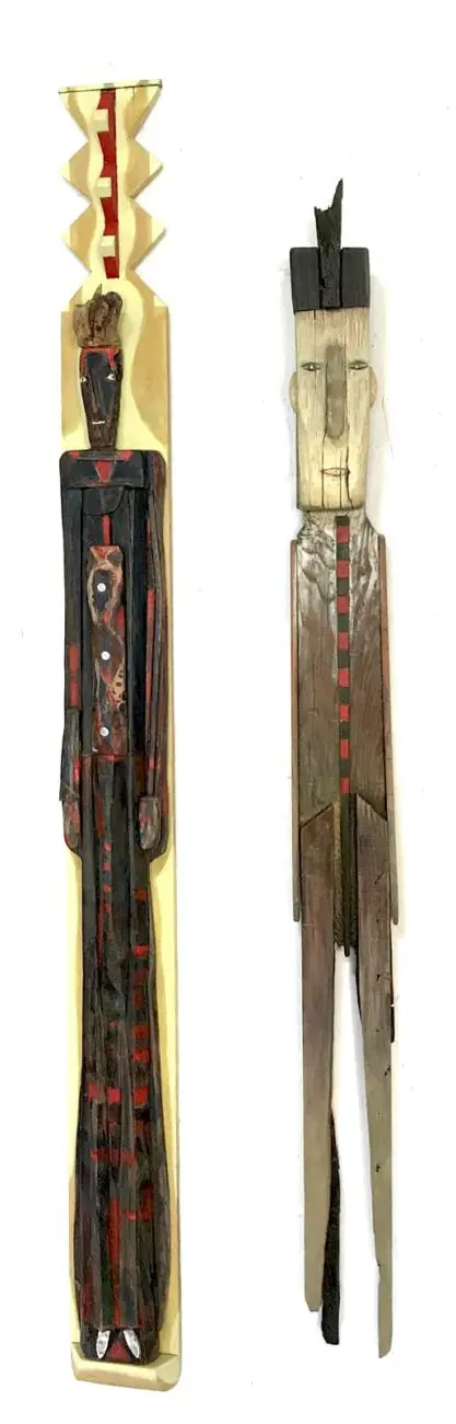 “The new work for this show includes four stylized painted wall constructions in wood with the human figure as subject matter. This format is a familiar strategy dating back to work I started in the eighties which took the form of totems and relied on an abstraction, monochromatic color, and heavily worked surfaces. Most of these qualities have carried over to recent work. I am still interested in depicting the human figure utilizing recycled and found wood, abstract and figurative imagery, with descriptive color and texture.”