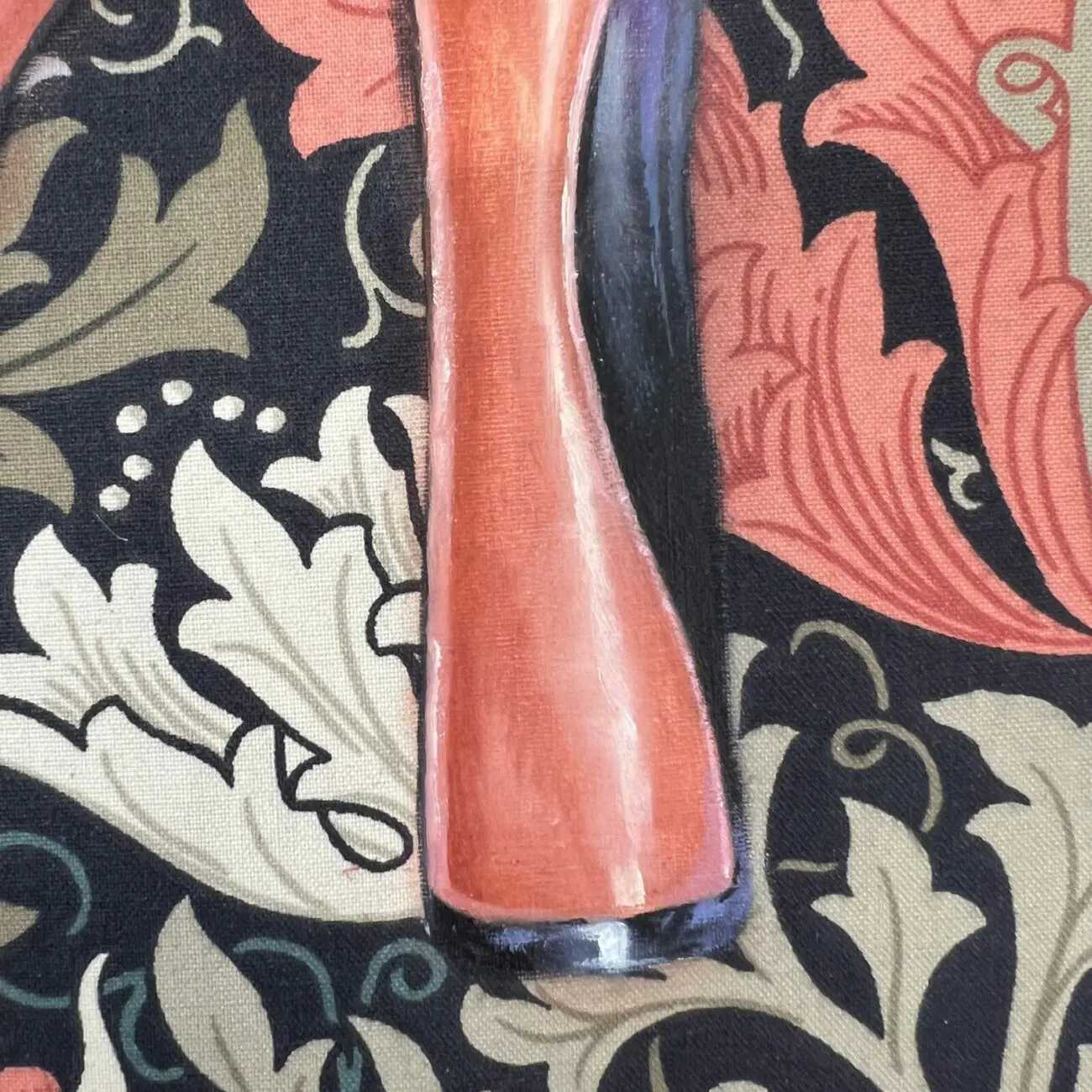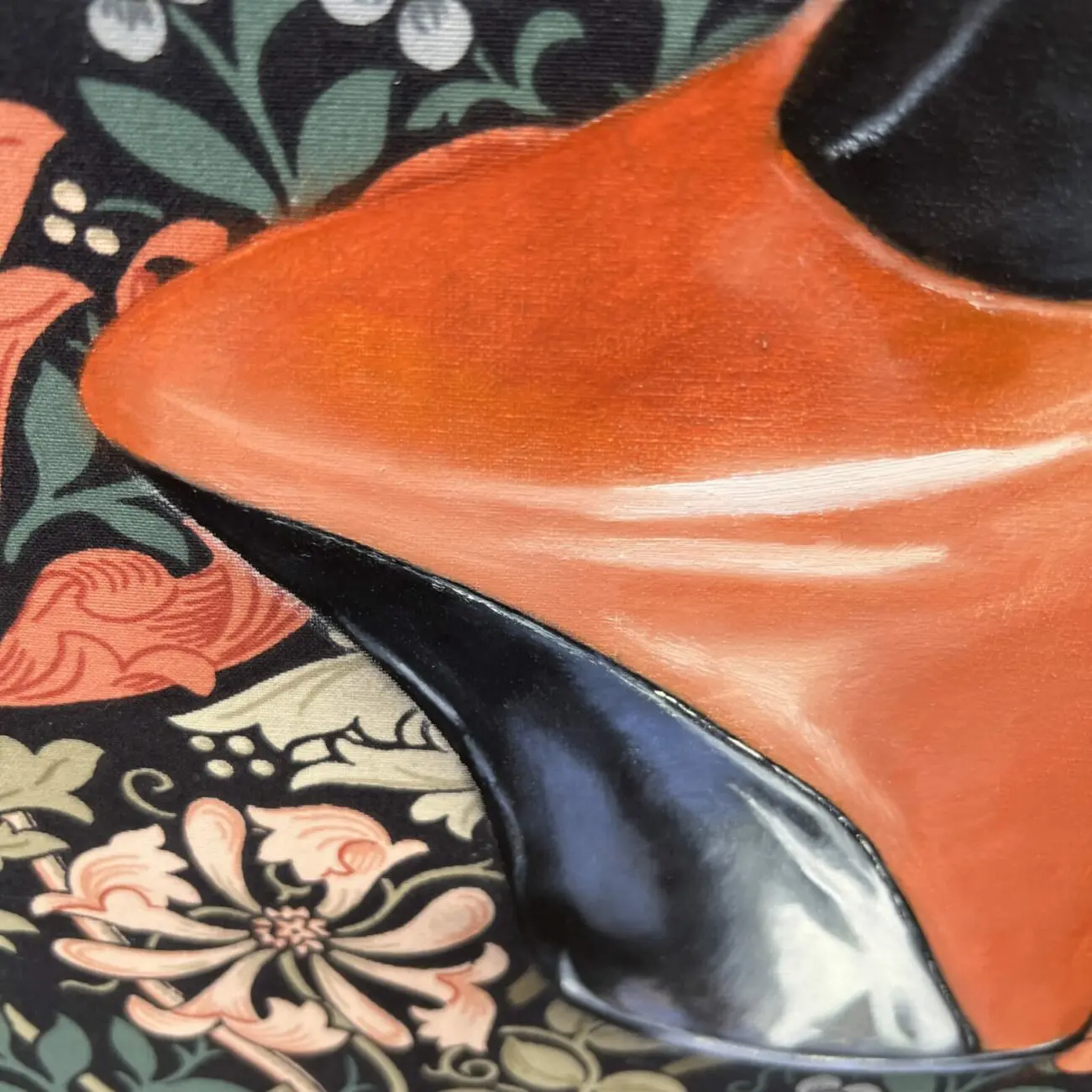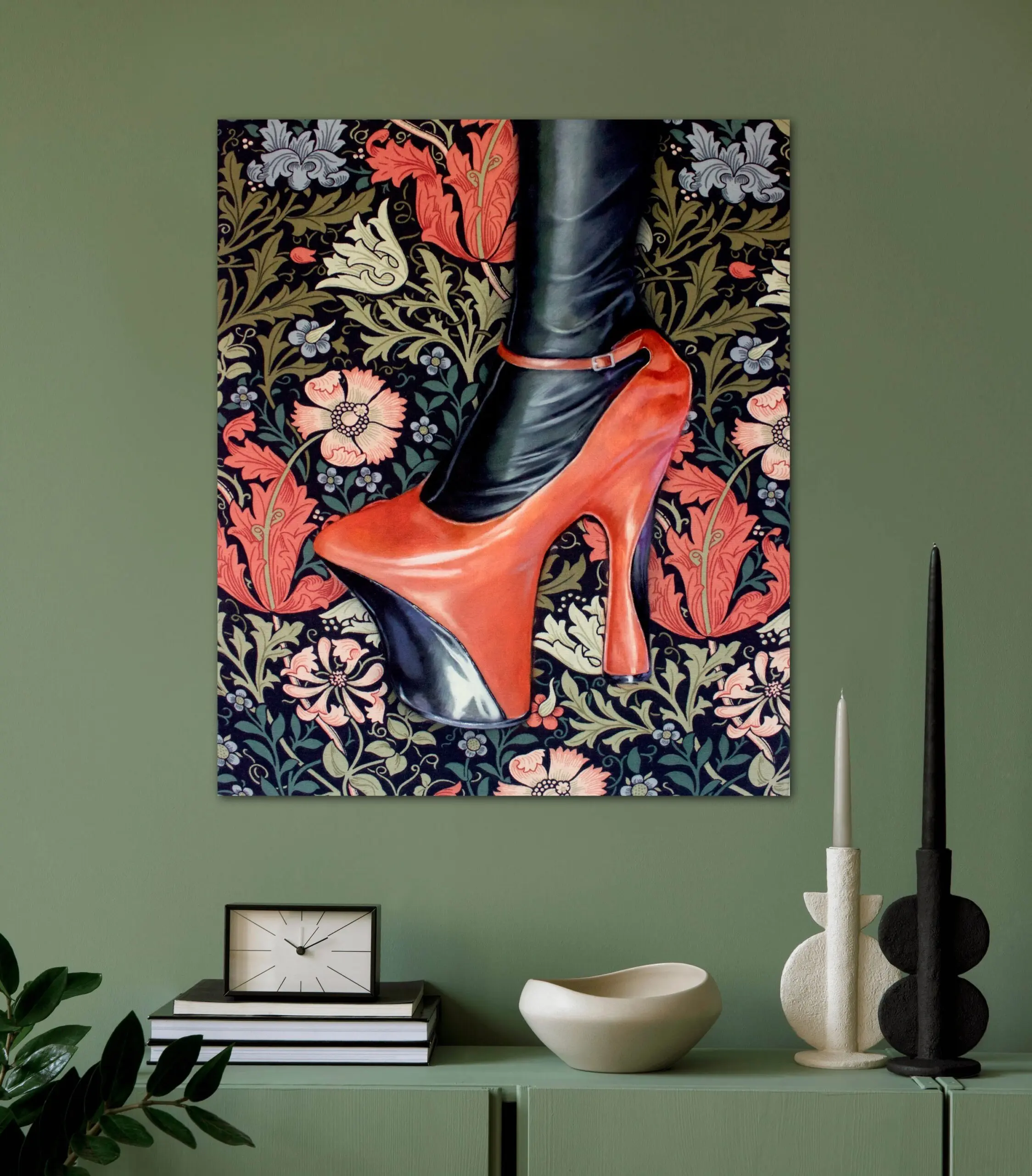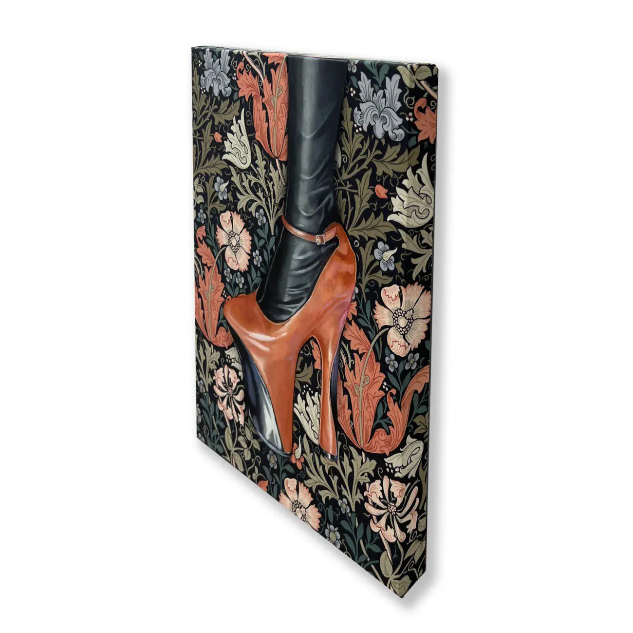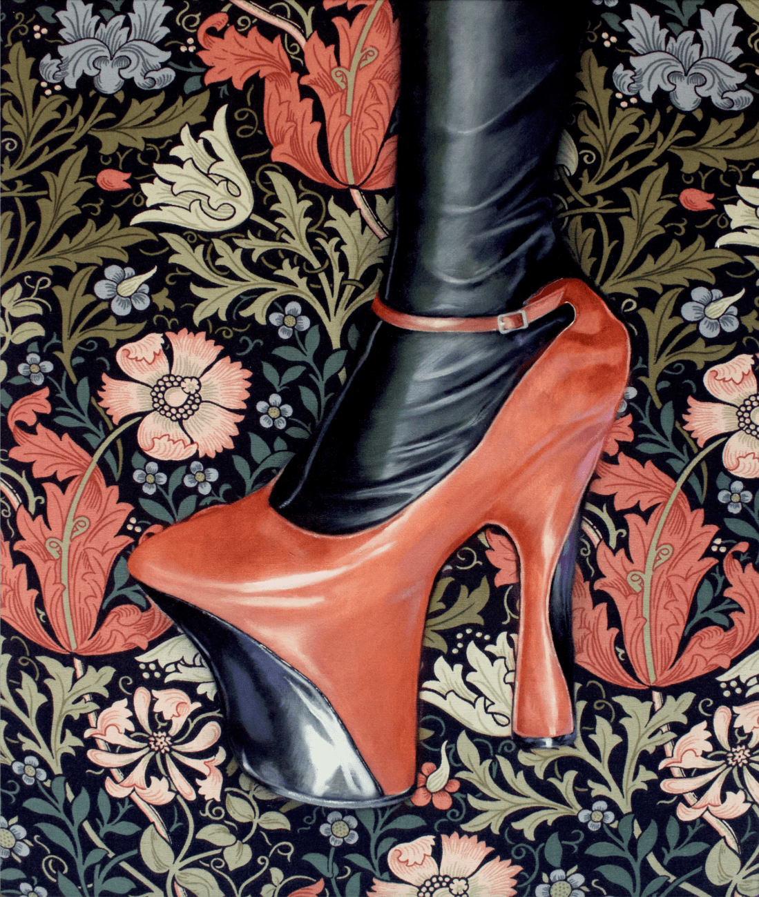 chose the backdrop of a classic William Morris fabric against the leather boot to show the
