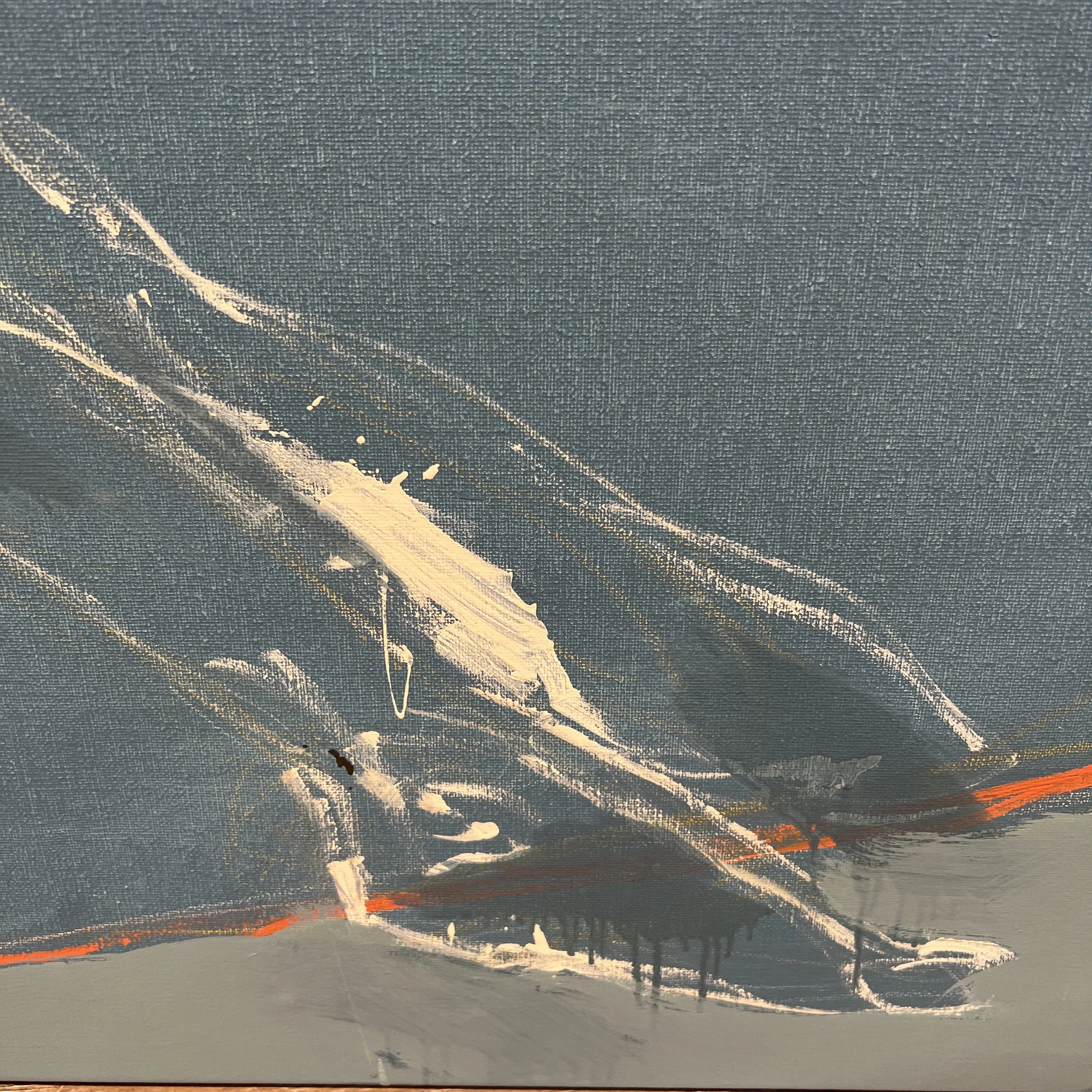 This horizontal 38 inch high and 50 inch wide original oil monochromatic painting on canvas is wired and ready to hang. There is a subtle texture throughout the line of the abstract figure. The sides of the artwork are painted as a continuation of the painting and it does not require framing. It is signed by the artist on the front and back of the artwork.