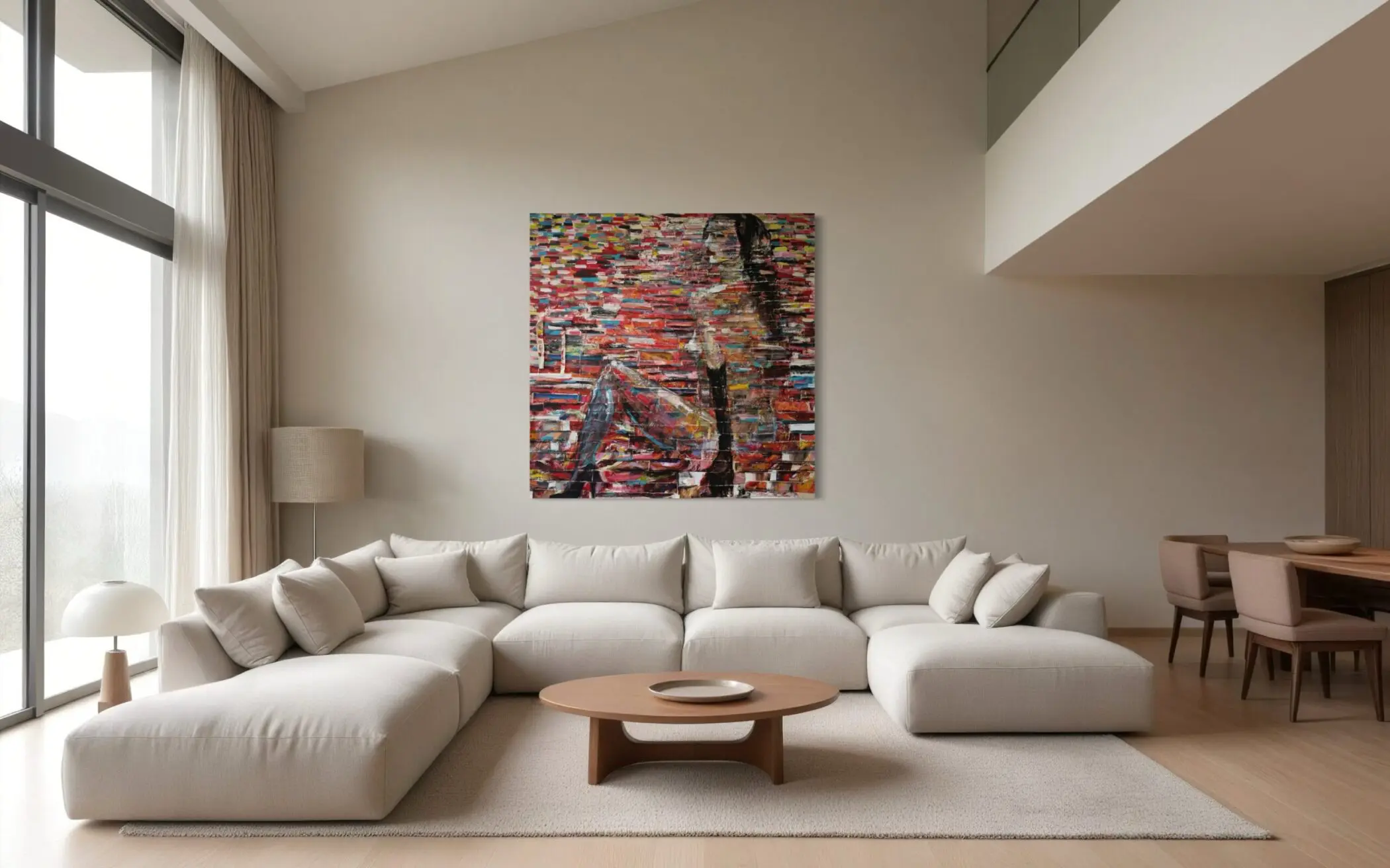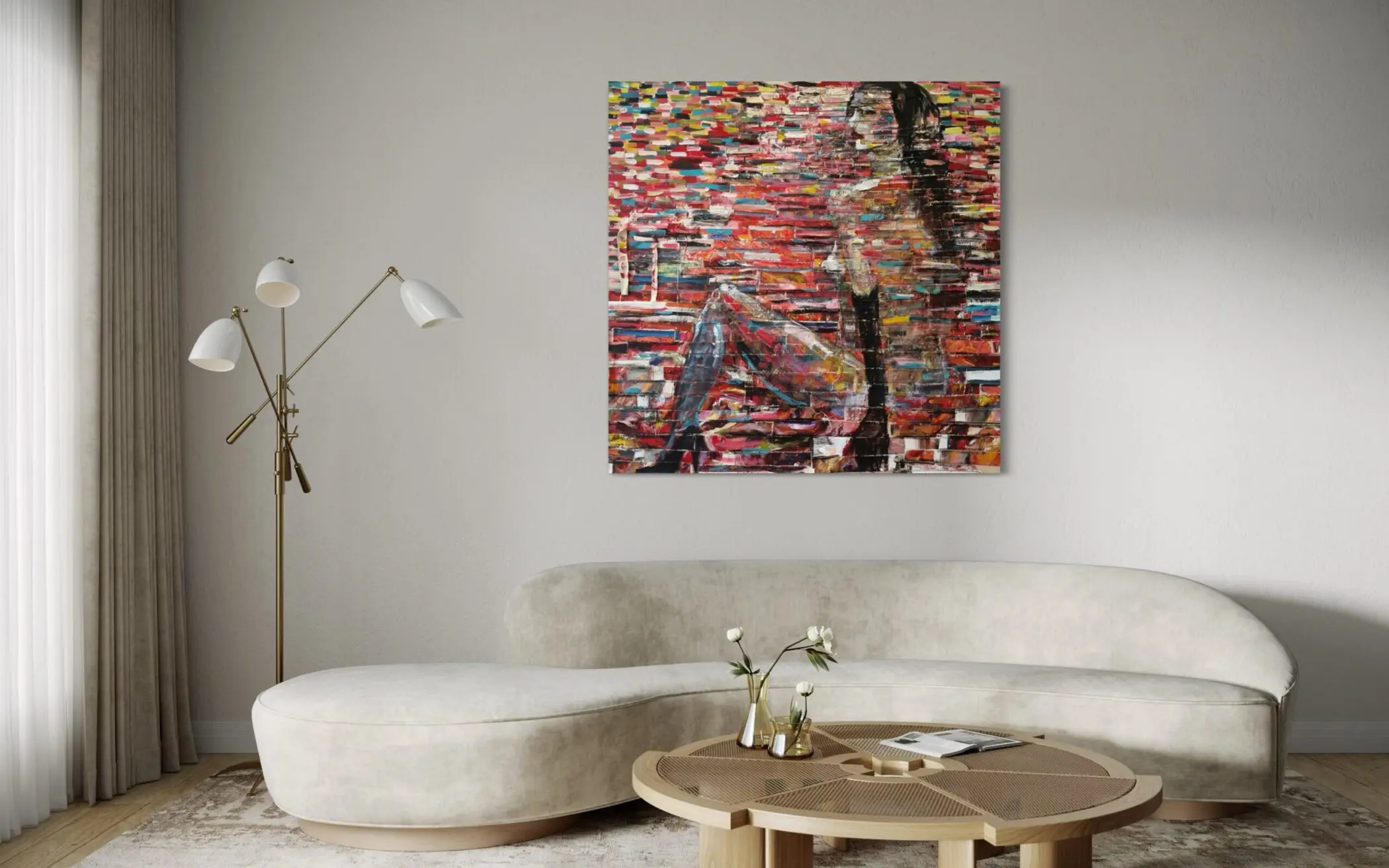 The canvas pulses with movement, as each impasto stroke fuels an electric sense of restlessness. The explosive palette of reds, pinks, and blues creates a tension between desire, seduction, and the chaotic intensity of perception. Intentional distortions give the impression of an image refracted through the fractured lens of memory or emotion, resisting a fixed interpretation.