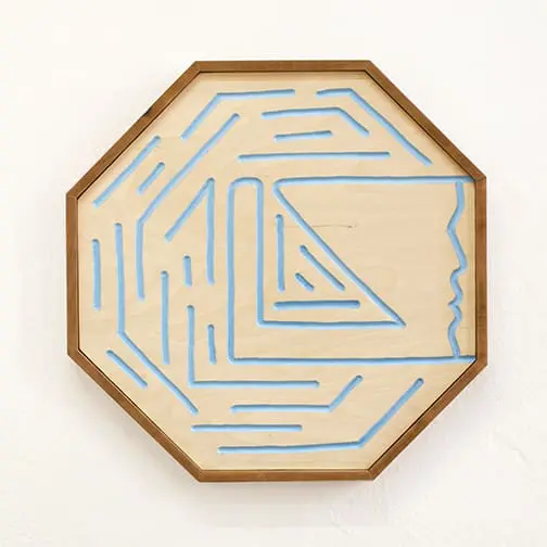 Acrylic, various woods, handmade frame