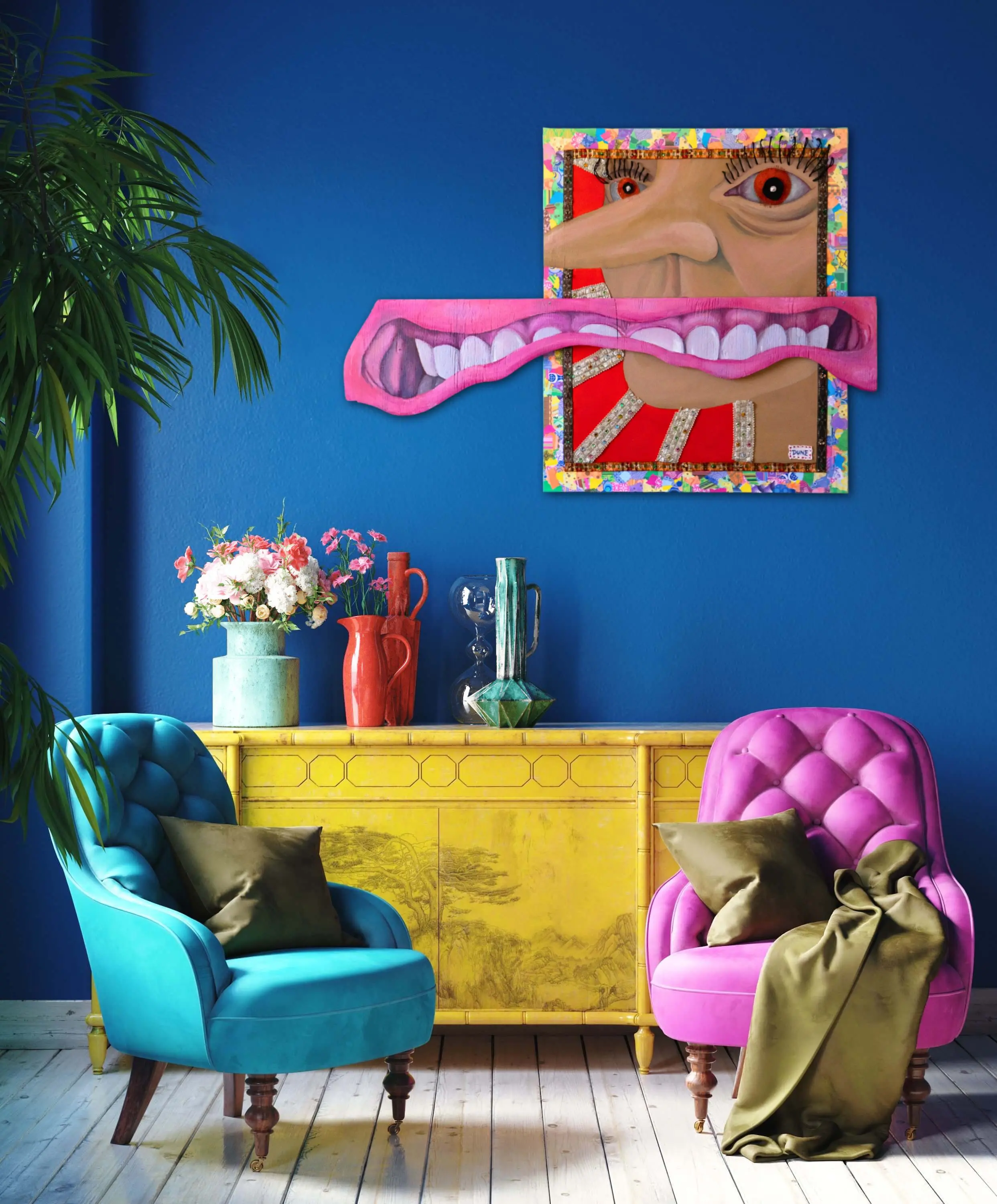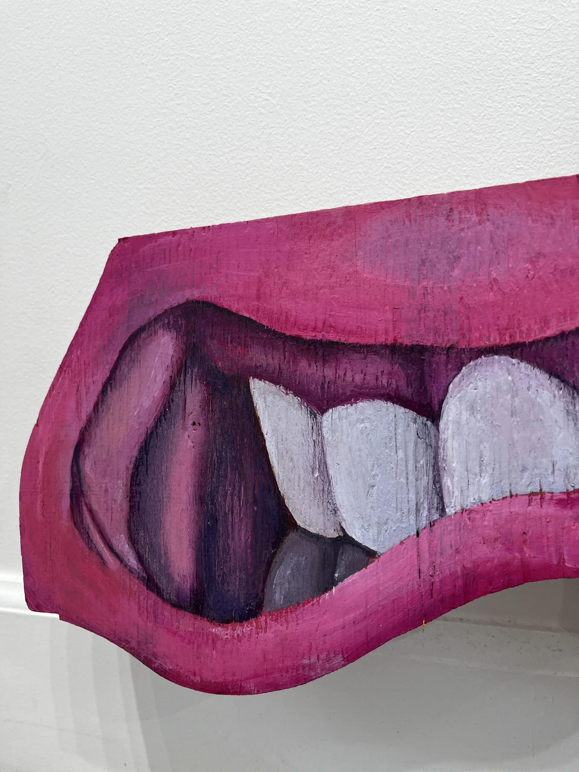 Megan Dunes ‘Loud Mouth’ is a surrealist masterpiece. The oversized teeth juxtaposed against the rest of the facial features suggest the narrative of a figure being pegged as a “loudmouth” by society.