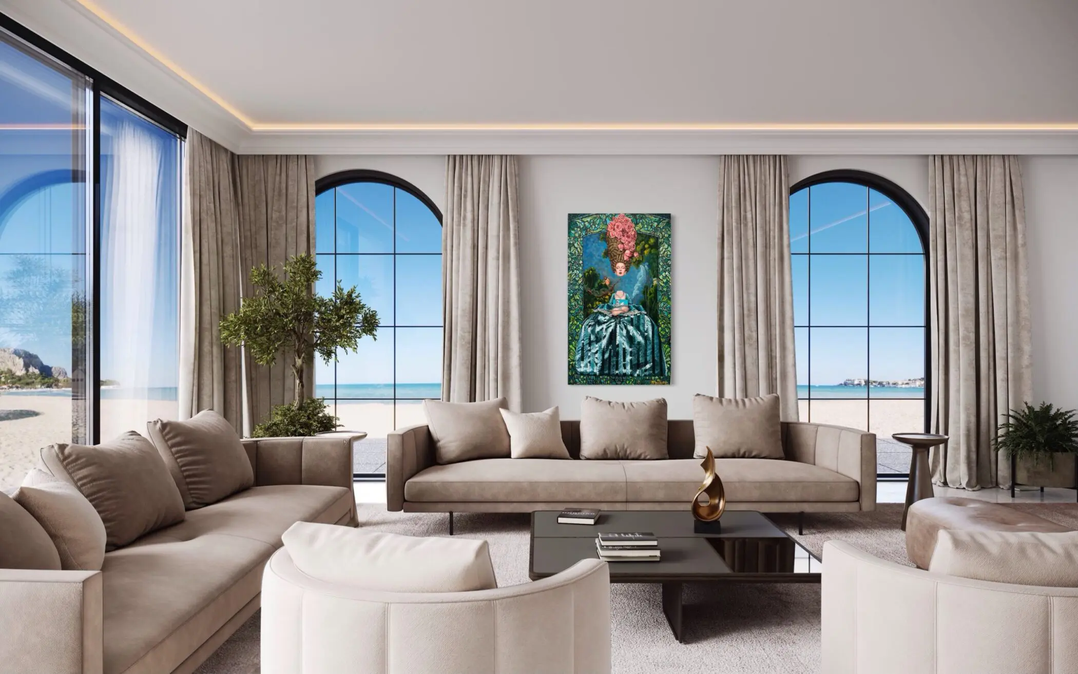 Far more than a portrait, “Marie Antoinette Tiffany’s” is a witty, sumptuous, and slightly irreverent exploration of decadence, power, and the performance of wealth. Through his seamless fusion of historical grandeur and contemporary satire, Mauritzio Battifora challenges the viewer to revel in the work’s extravagance while questioning the constructs of privilege, femininity, and material desire across centuries.