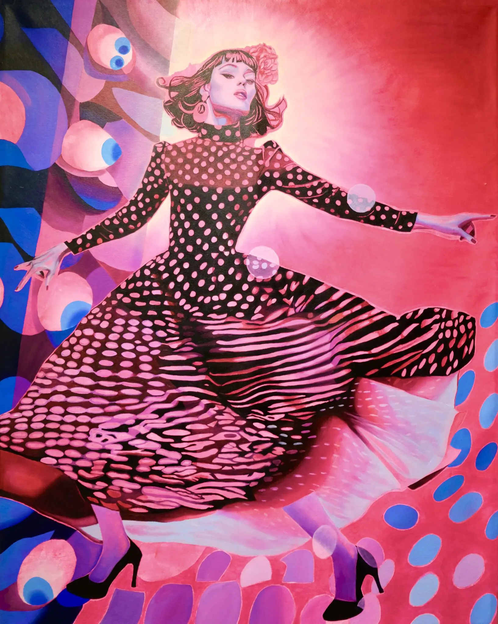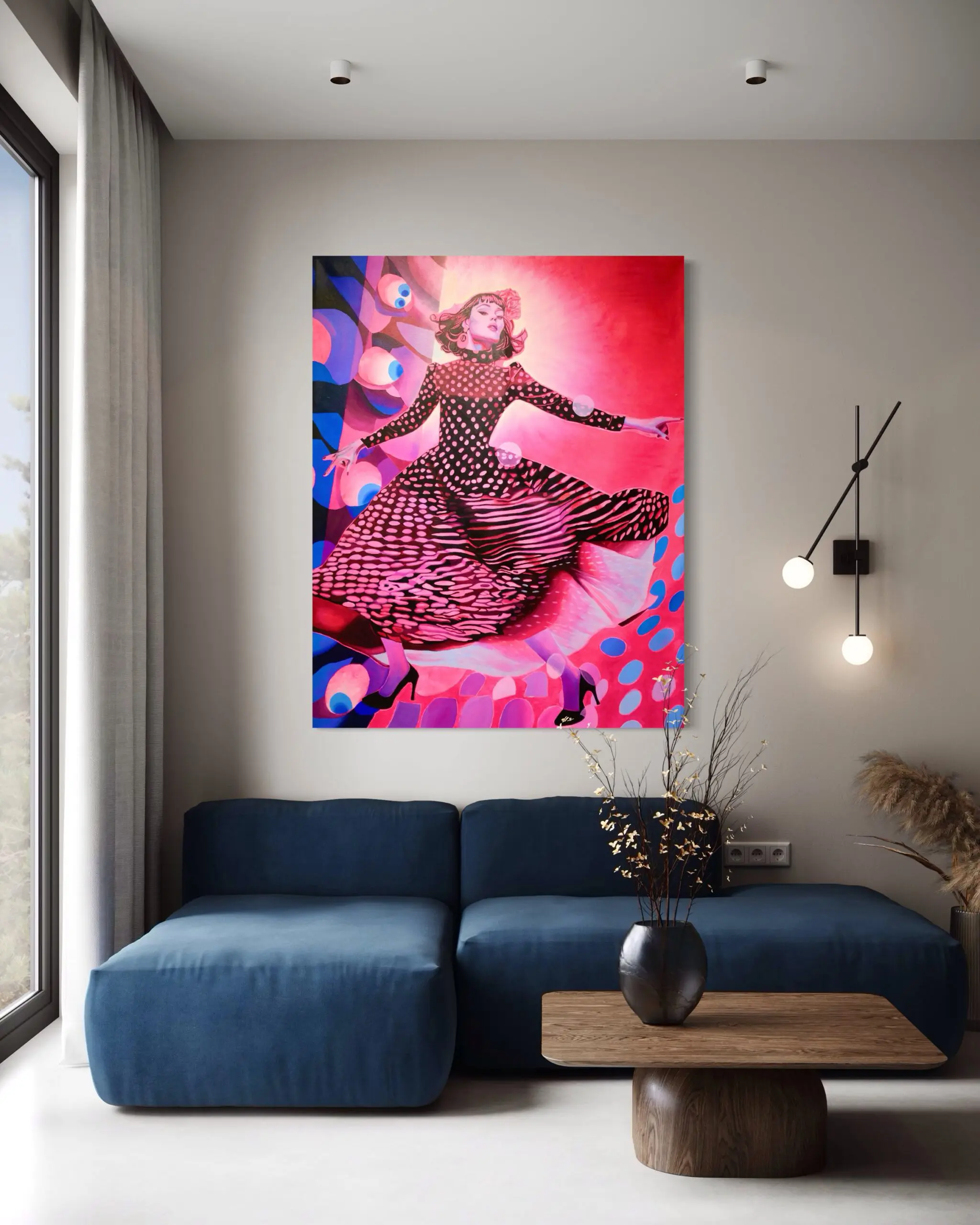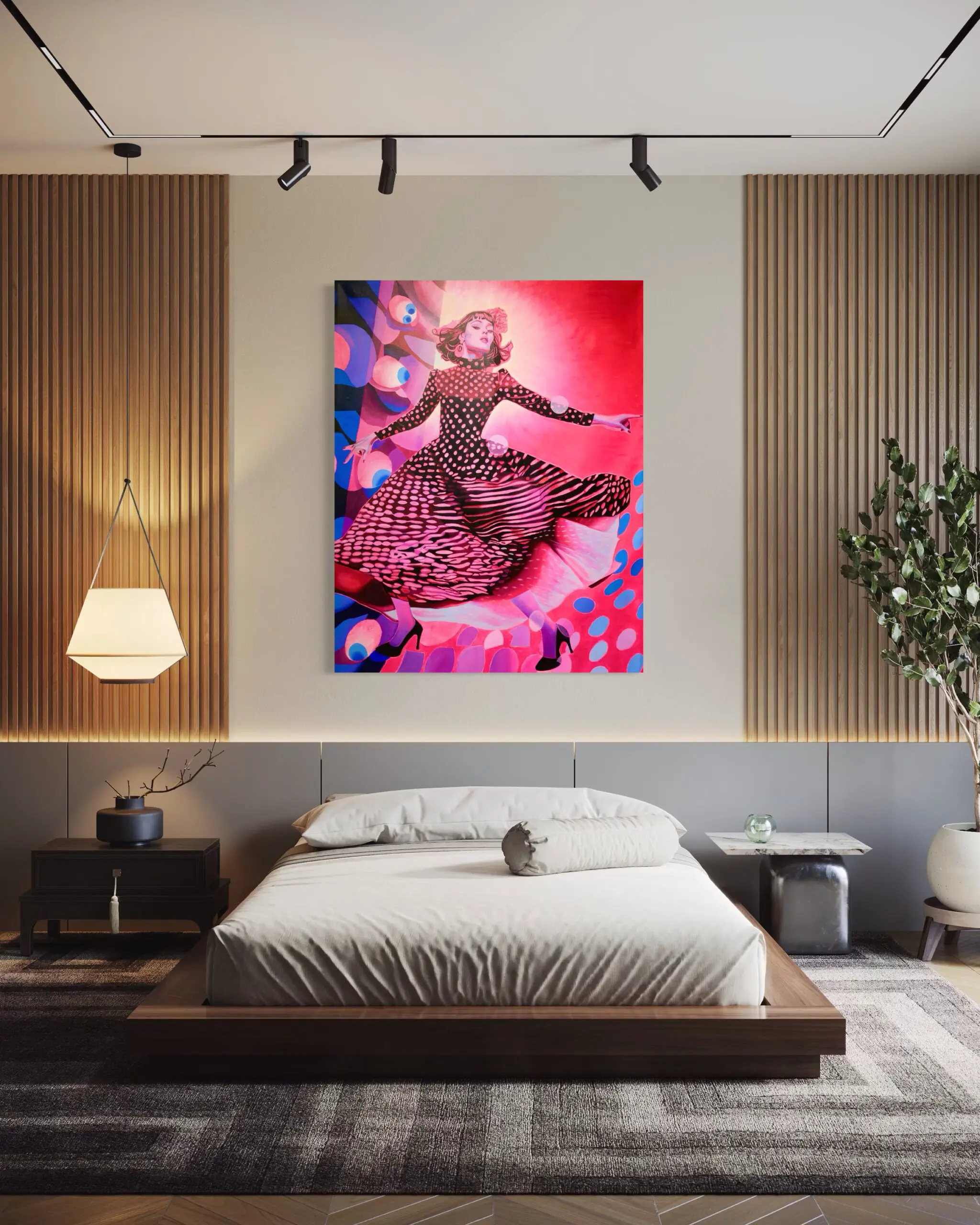 Marieta is a bold and radiant celebration of identity, movement, and legacy. Part of the Femininity and Race series, this striking acrylic painting reimagines the flamenco dancer as a symbol of cultural pride and feminine power. Swathed in vibrant hues of pink, red, and violet, Marieta moves with electrifying grace—rooted in tradition yet unapologetically modern.