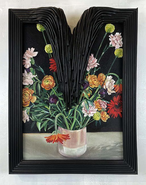 Bereza’s work is inspired by her experience in Chernobyl where she witnessed the disappearance of society and painted the absence of humans and abandoned buildings and trash. This led to her creating creatures that live more within the natural world instead of fighting against it. Bereza employs materials that allow her to be in control with tight detail and then pouring mediums like expandable foam over it in order to lose it.