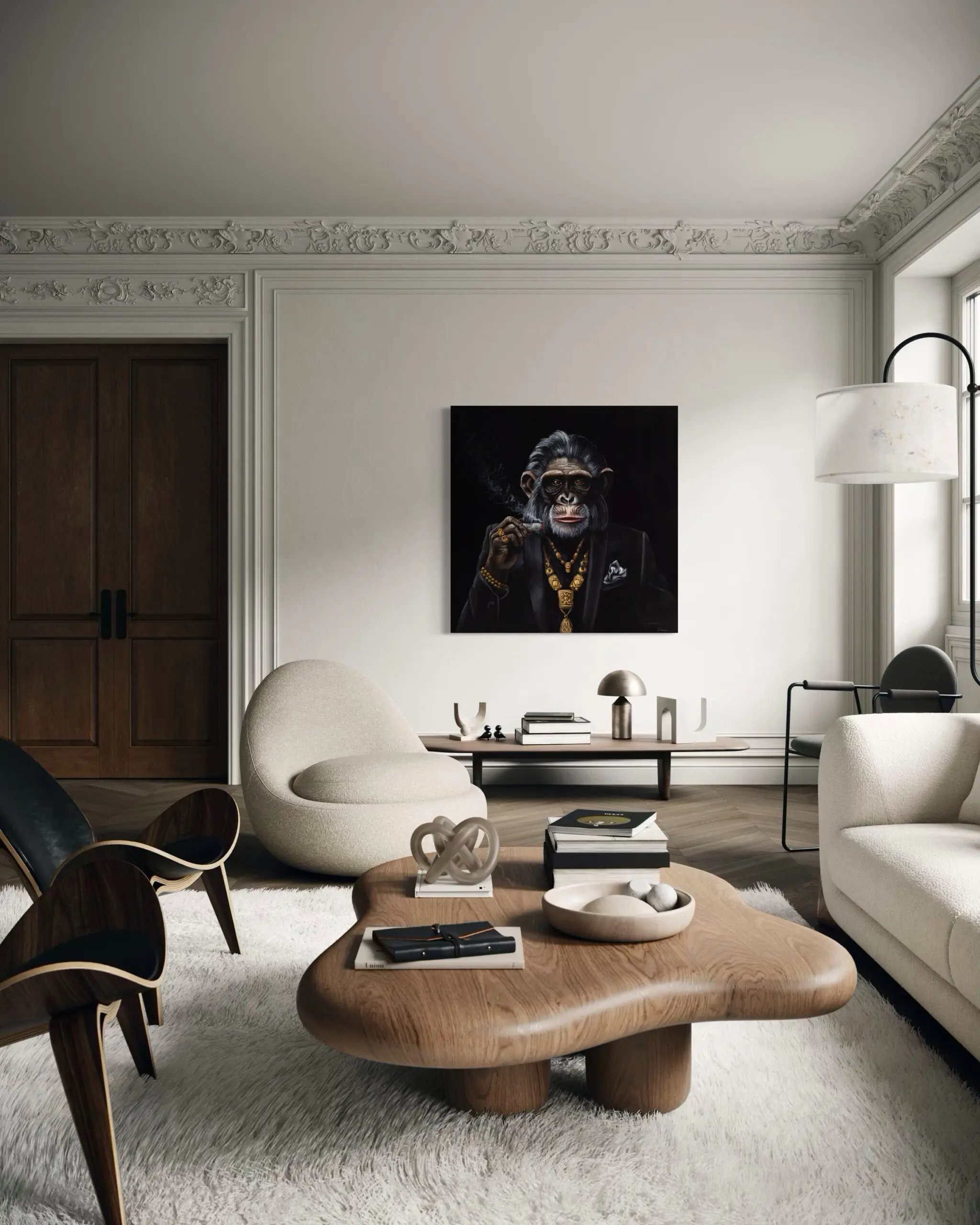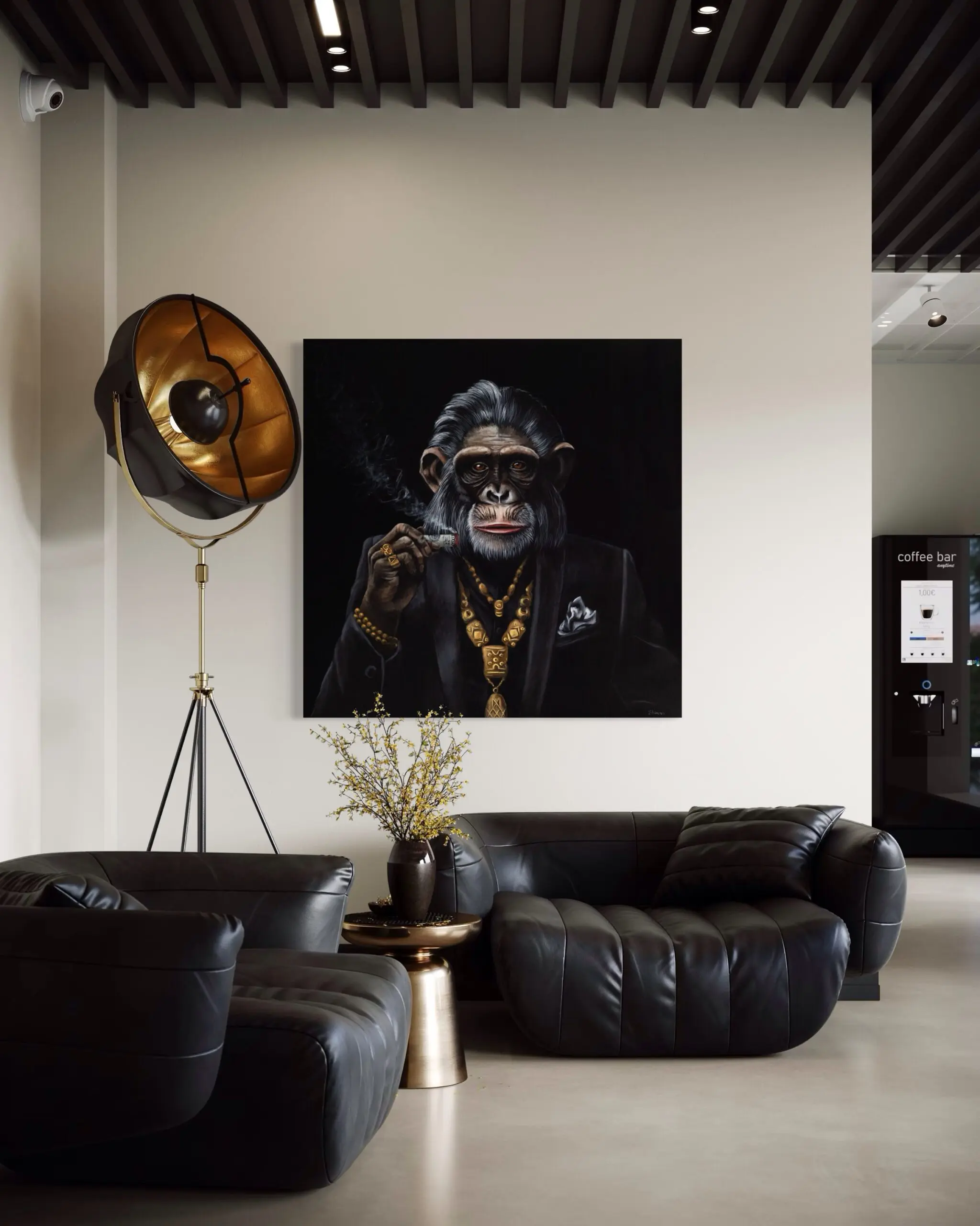 Perfect for collectors of luxury-inspired fine art, contemporary portraiture, and thought-provoking cultural iconography, “Monkey Power” stands as an irresistible fusion of strength, sophistication, and enigma—a conversation piece that commands attention, respect, and curiosity.
