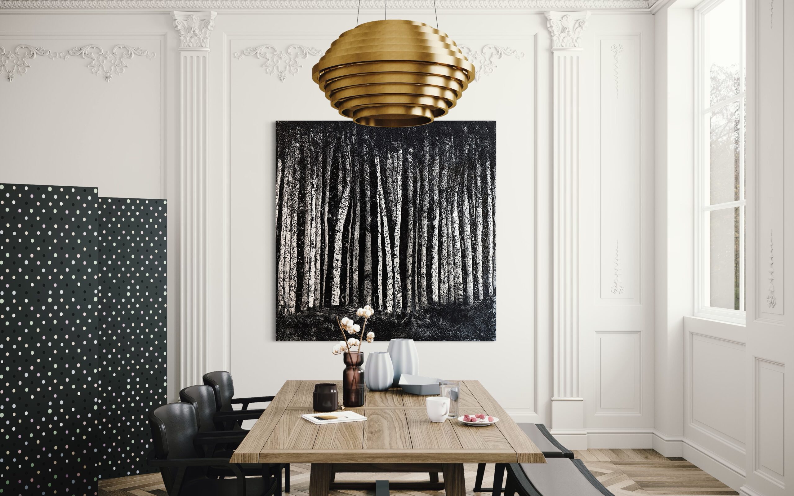 “Moonlight Sonata” evokes a sense of quiet solitude, capturing the essence of a nighttime landscape where light plays gently across the natural world. The balance of dark and light, density and openness, creates a composition that feels both grounded and ethereal. The painting offers a contemplative look at the beauty of nature, distilled into the simplest yet most expressive elements of black, white, and texture, making it a sleek and modern addition to any art collector or interior designer’s repertoire.
