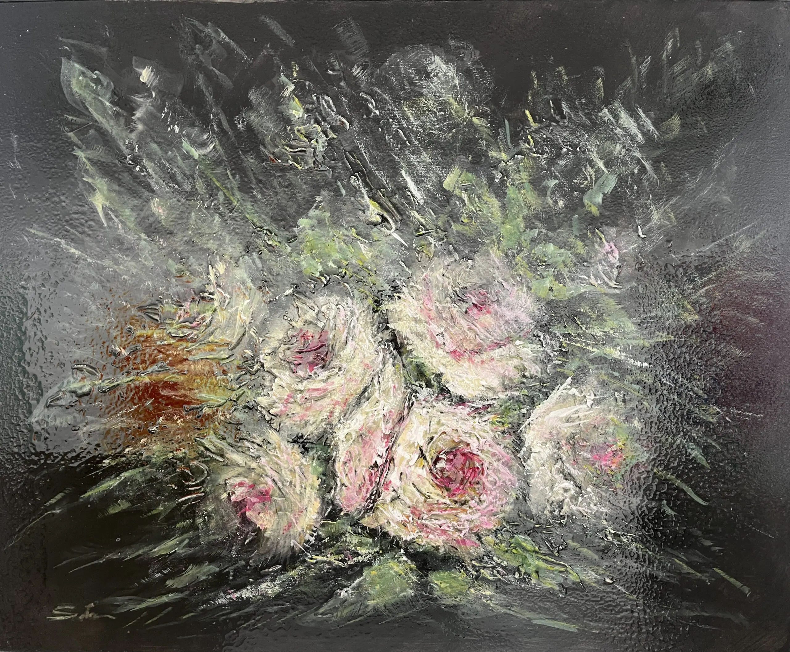 A cluster of exquisite roses takes center stage against a dark and enigmatic background. Bathed in the soft glow of moonlight, the roses exude an aura of mystery and allure. Each petal seems to come as if engaged in an enchanting dance.