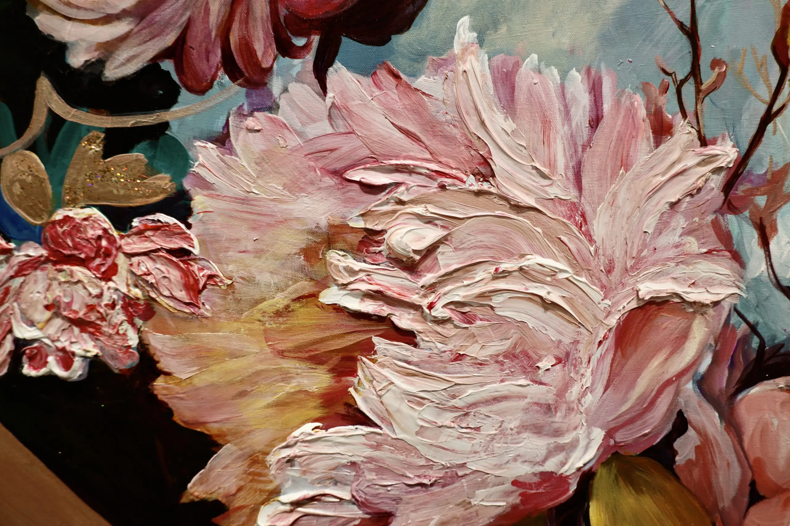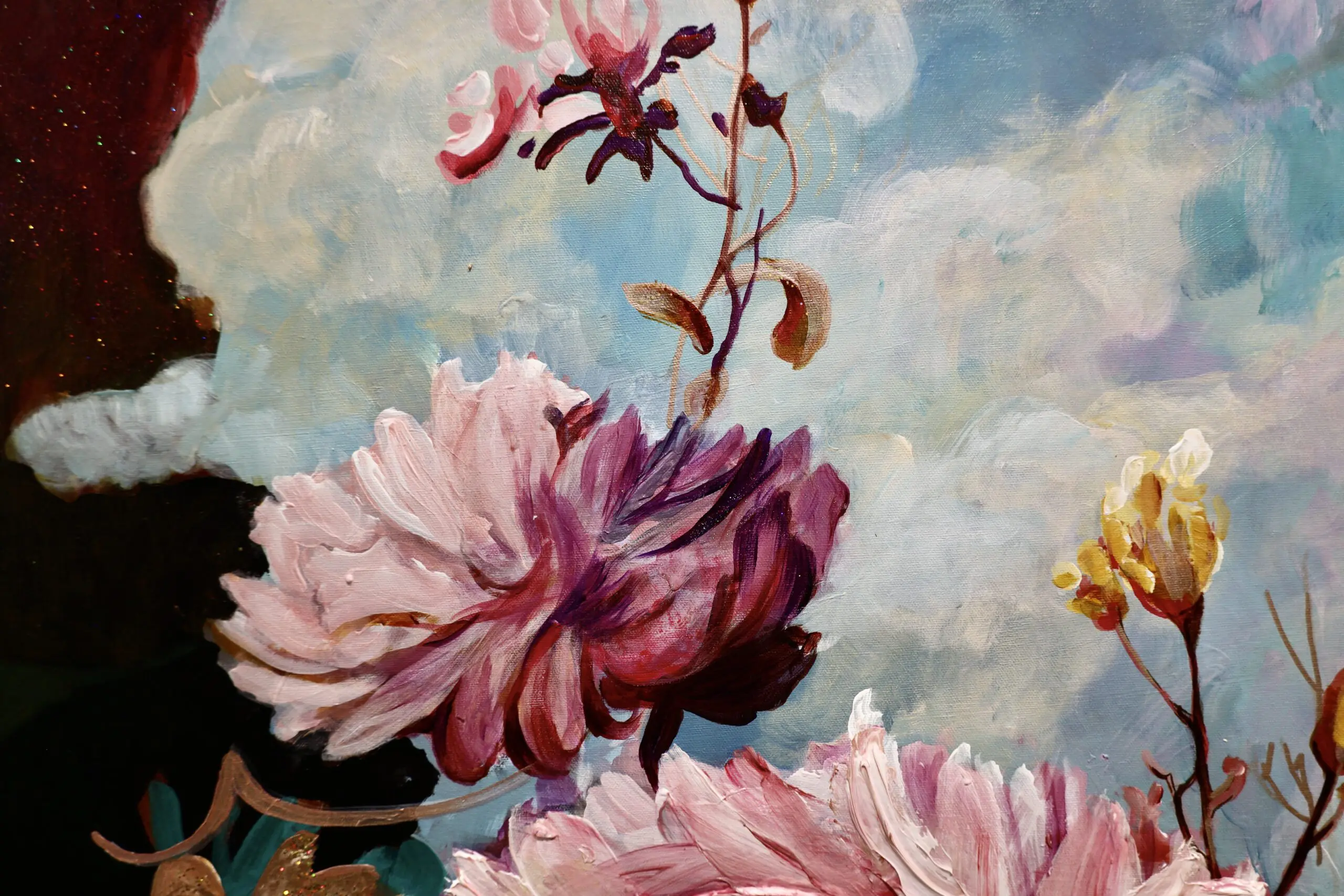 The flowers, with their vibrant colors and intricate details, stand as a symbol of nature’s abundant beauty and diversity. As we gaze upon this artwork, we are reminded of the interconnectedness that exists within nature. The flowers, the sky, the moon, and the clouds all coexist, each playing a vital role in the symphony of life. They celebrate one another, weaving a tapestry of beauty and harmony.