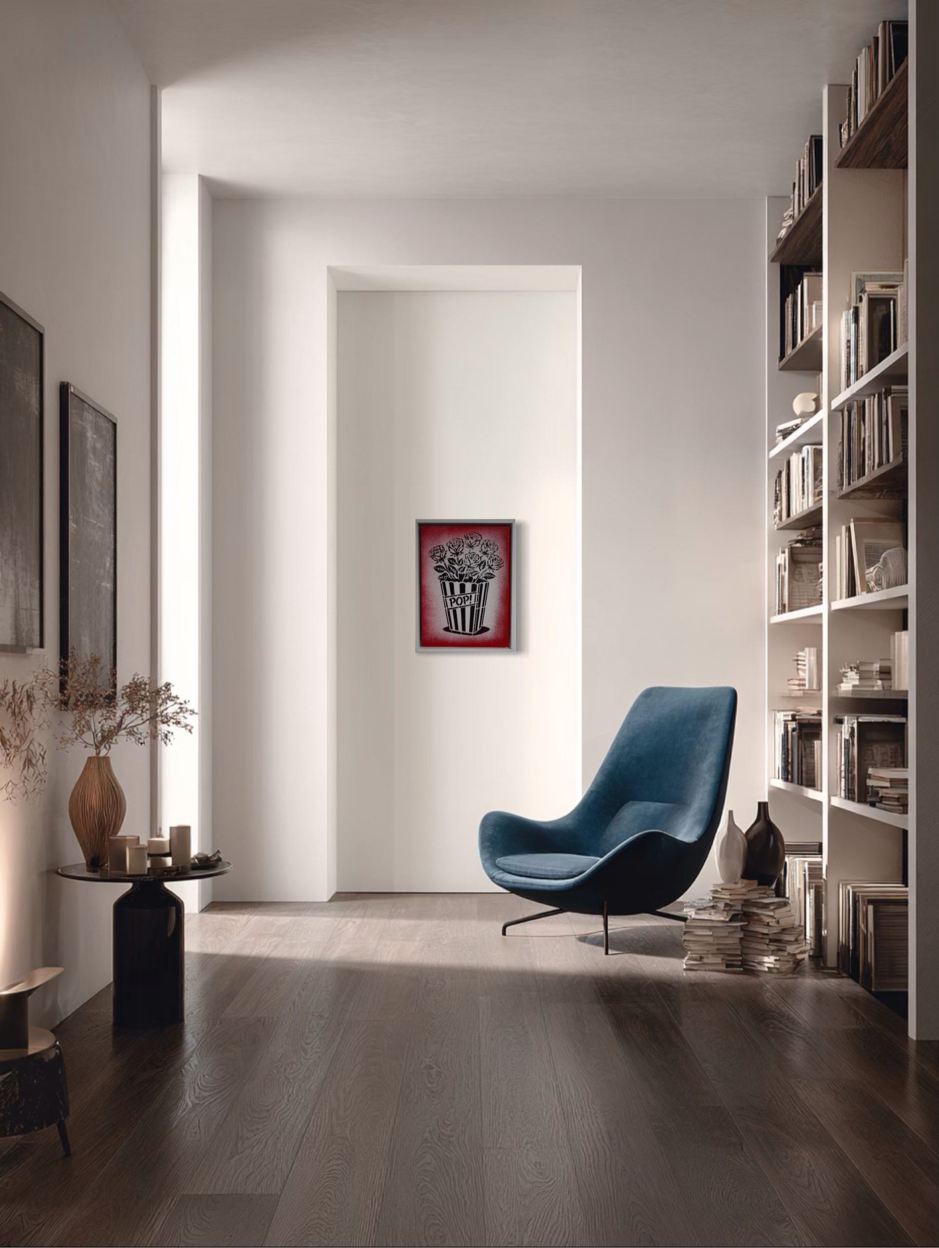 Pop Roses! is presented as part of Burton Morris’ solo exhibition Icons in Bloom at MASH Gallery. The work belongs to the artist’s Pop! x Bang! series, where his signature popcorn box icon is reimagined and filled with roses across multiple color variations. Inspired by a moment of childhood imagination in which Morris’ daughter transformed a popcorn-shaped vessel into a vase for flowers, the work merges the visual language of cinema culture with the romantic symbolism of the rose, bringing together entertainment, beauty, and luxury within a single emblem.