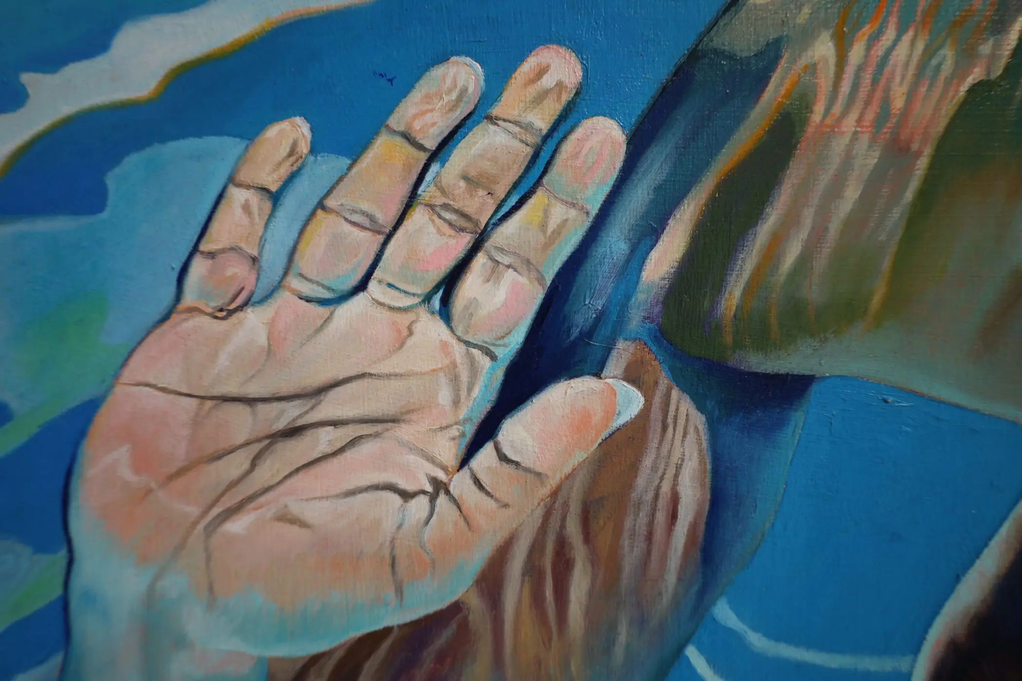 At its core, “Prayers” is a meditation on transition, the weightlessness of water, and the fleeting nature of a single moment. Through Jester’s deft handling of hyperrealism and surreal distortion, the painting invites viewers to experience the sensation of floating, of being both held by and released into the unknown currents of existence.