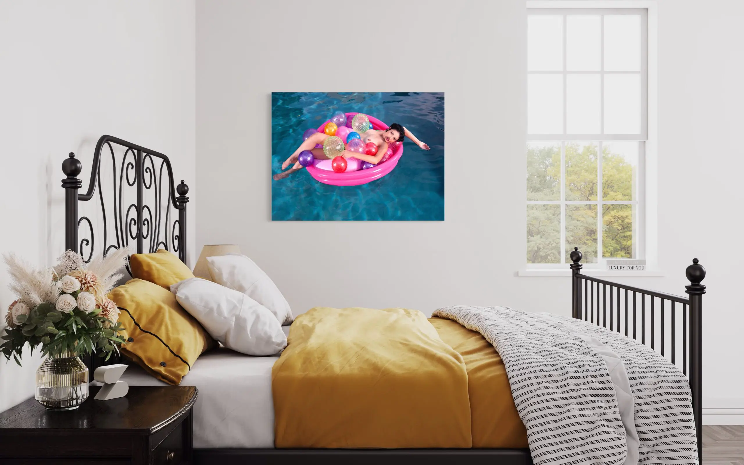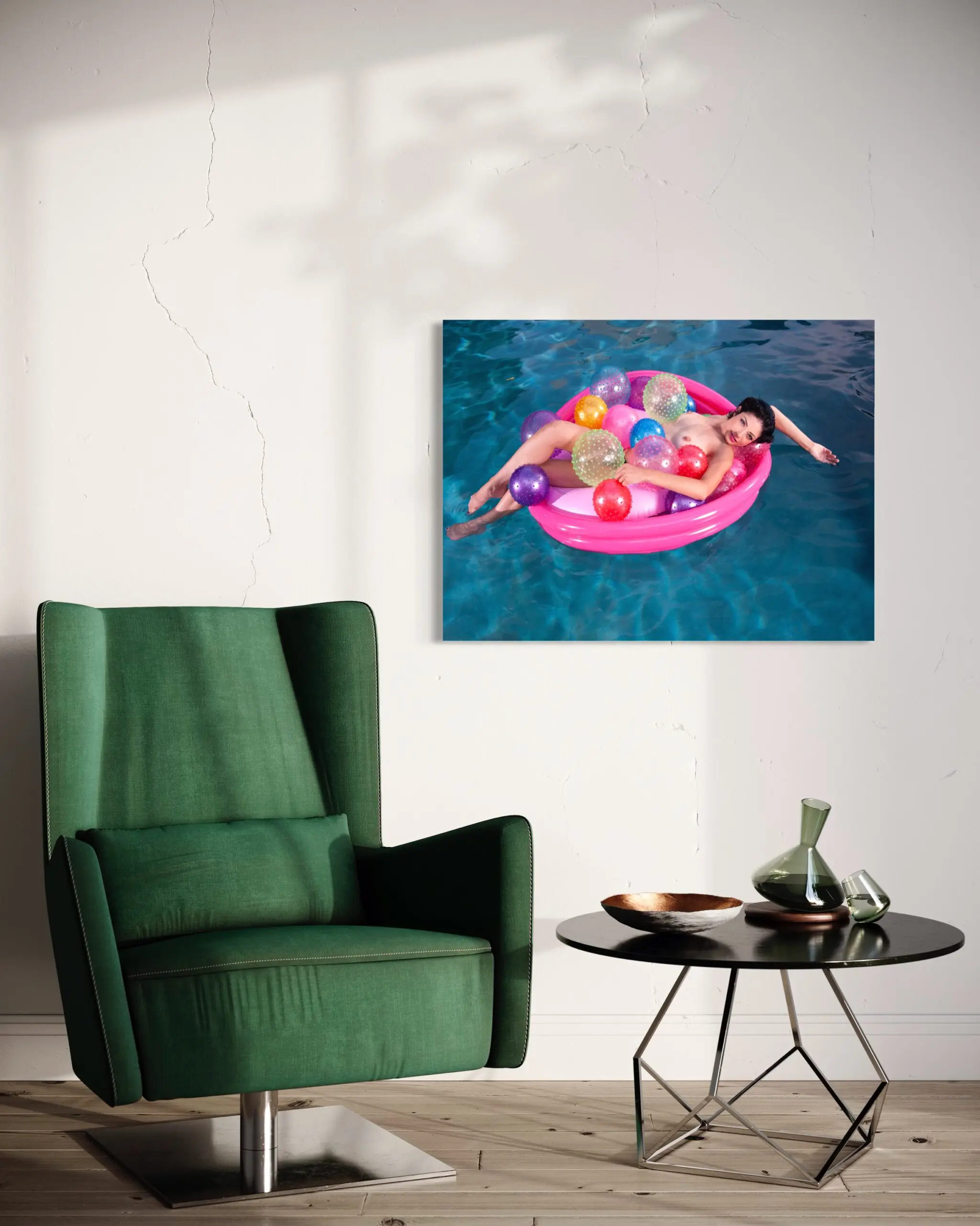 This photograph captures a moment of pure bliss and embraces the essence of embracing the carefree and joyful aspects of life. It is a celebration of fun, excitement, and sensuality, inviting the viewer to embrace the same sense of freedom and joy that the woman exudes in the photograph.