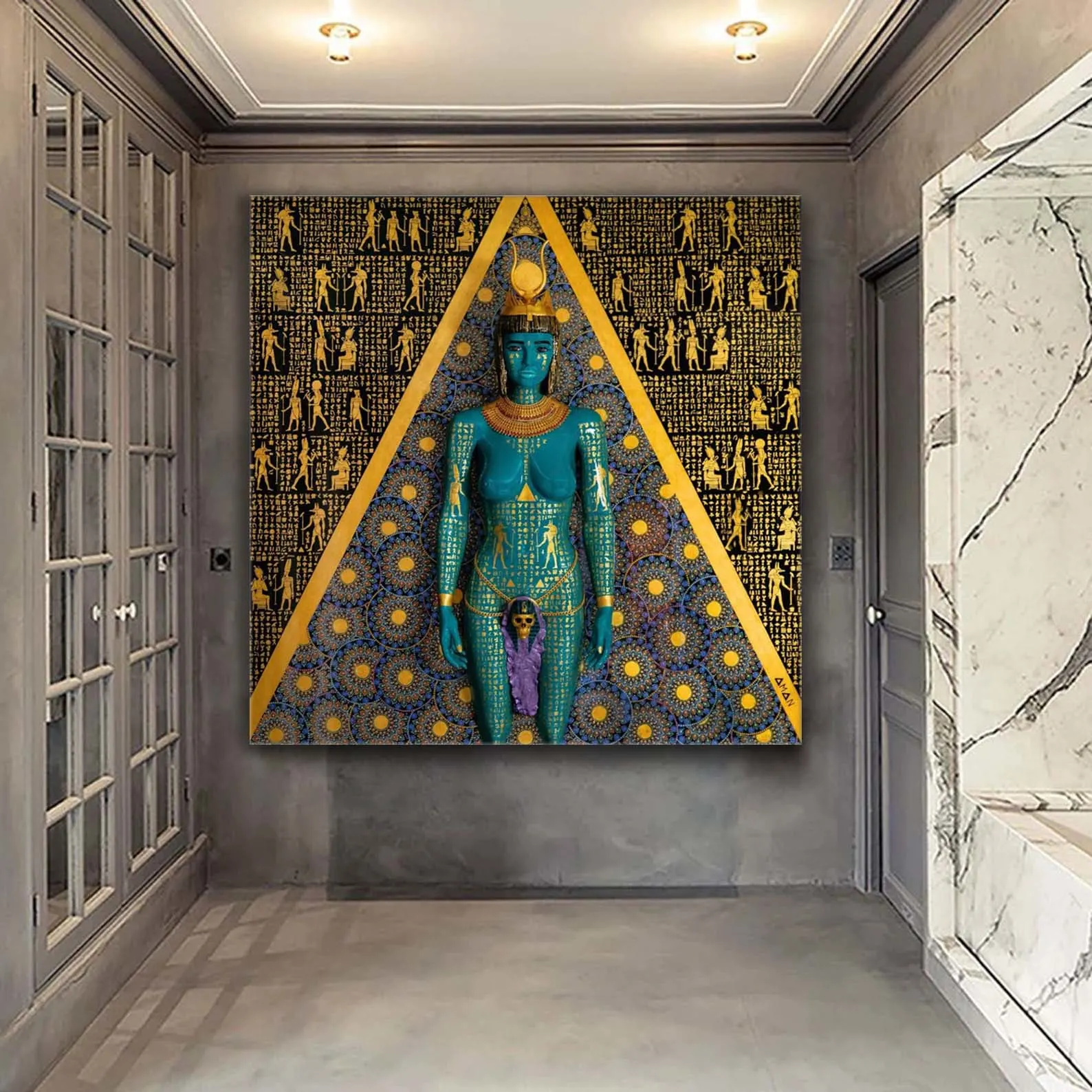 Aman’s art is a unique representation of how art can create the bridge to protection to the spiritual world. As a child, Aman was fascinated with the unknown and found that his paintbrush was the key to tapping into his visions. Aman began painting at a very young age. His paintings are unlike any other paintings ever seen before. Aman’s paintings represent Middle Eastern, Egyptian, and Indian history through his uncanny talent for creating sculptures on canvas. Every painting Aman has created tells a story about the fortification of the spiritual realm that creates the path to live a full and prosperous life.