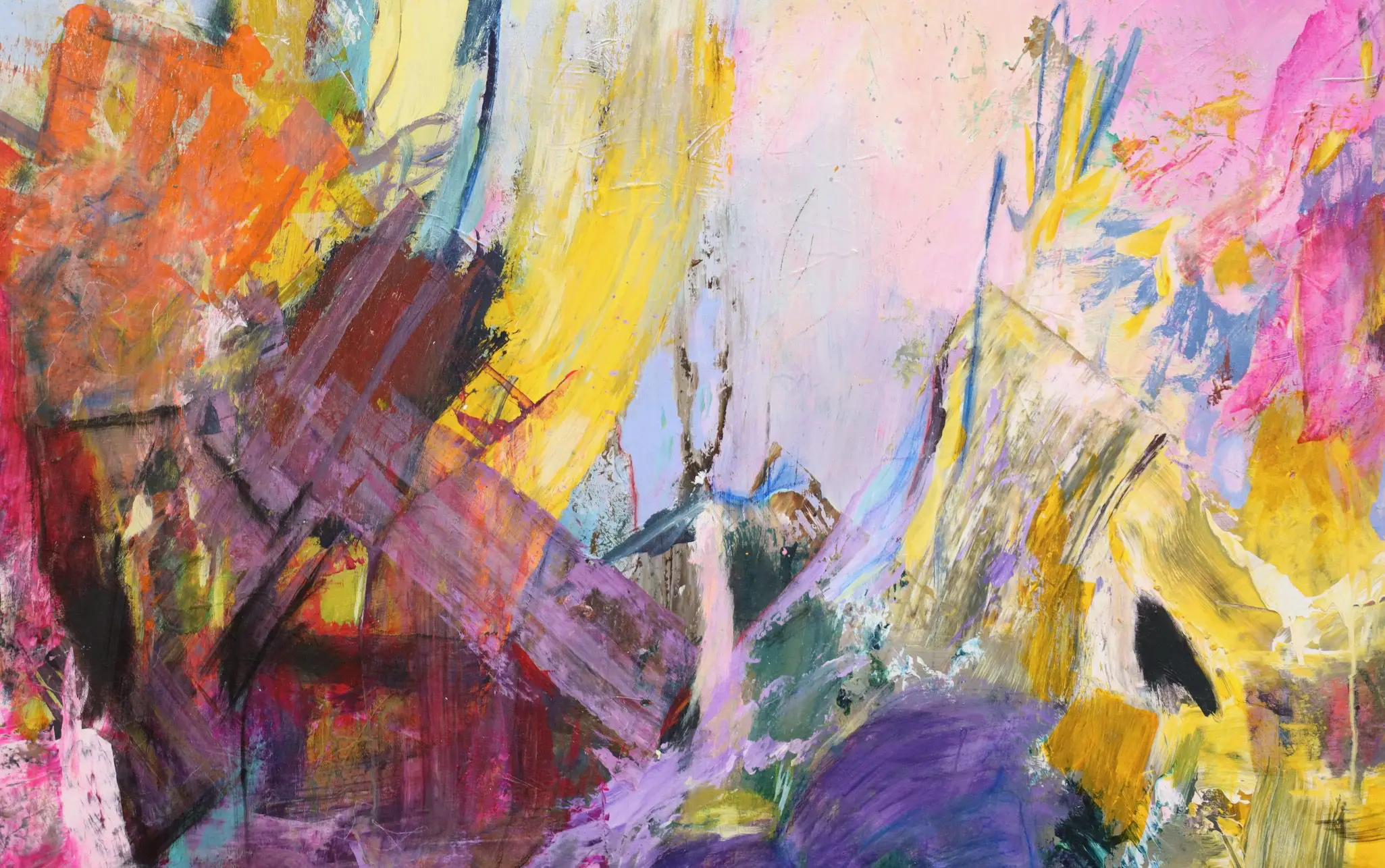 Hopkins breathes new life into this expressive form through a meticulous process of layering vibrant colors in dynamic, gestural strokes, asserting her own expressive narrative.